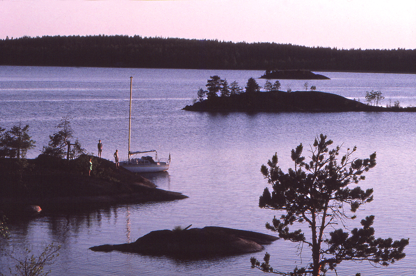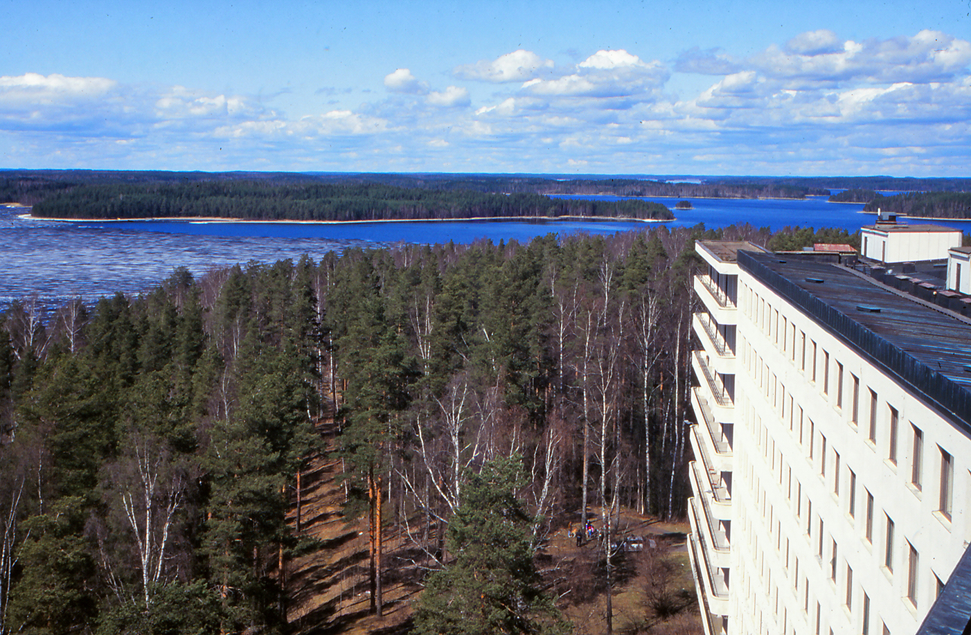 Purjehdusretkellä Suursaimaalla, Linnasaaren kansallispuistossa lähellä Savonlinnaa 1983. Tiurun sairaala (ent. Tiuruniemen tuberkuloosiparantola) katsoo Saimaalle 1998 (kuva: Antti Lehtonen). Tänään (2024) sairaala on hylätty ja purkukunnossa. Karjalan perhoshelmiä: haapaperhonen, keisarinviitta, kirjopapurikko, purohopeatäplä (P-Karjala) ja muurahaissinisiipi (kuva: Pekka Ojalainen).