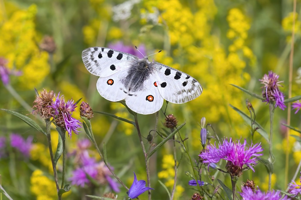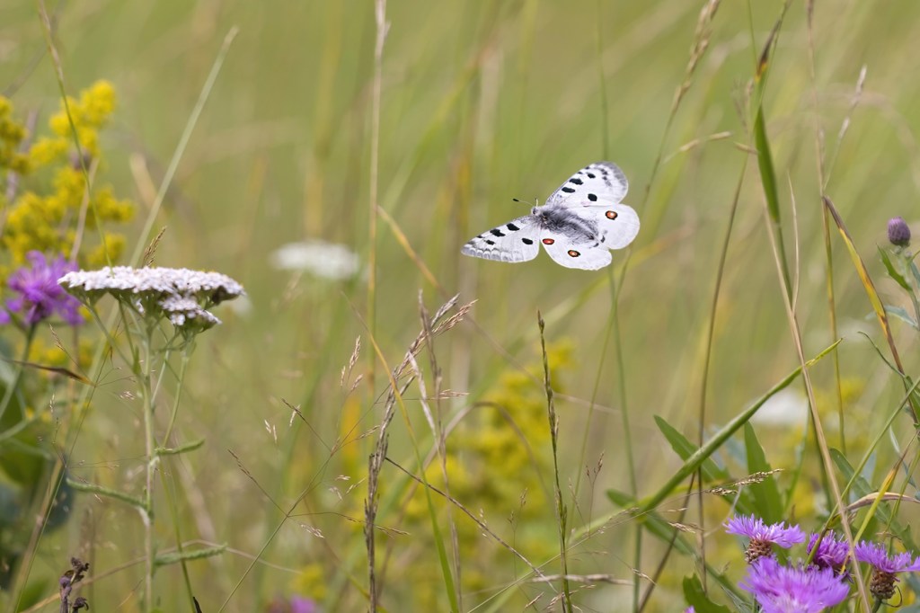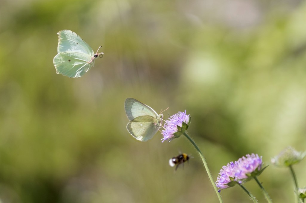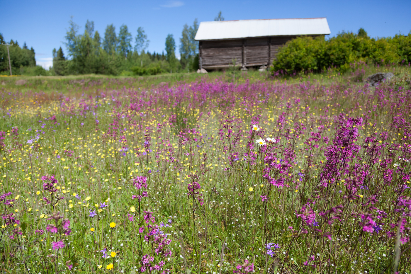 Kangasajuruohot ja ruusuruohot houkuttelevat perhosia. Keltaniittyperhonen on paahdelaji, verkkoperhoset viihtyvät hiekkateiden pientareilla, mutta angervohopeatäplä ja suokeltaperhonen ovat tulleet kukkia etsimään kosteammista ympäristöistä. Heinäkuun alussa sitruunaperhonen on jo merkki kesän kääntymisestä loppupuolelle.