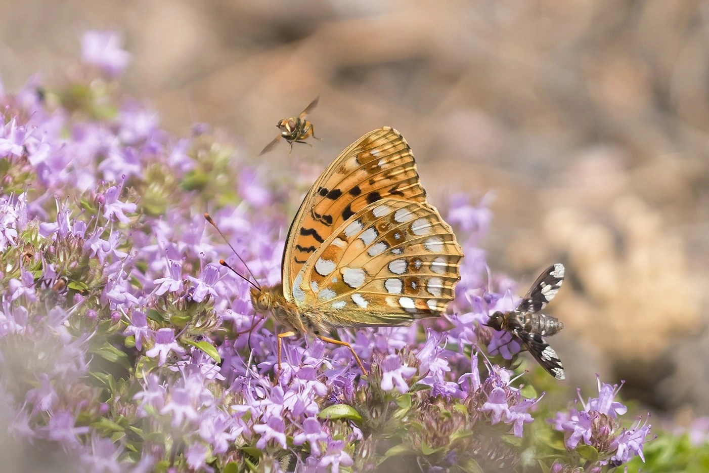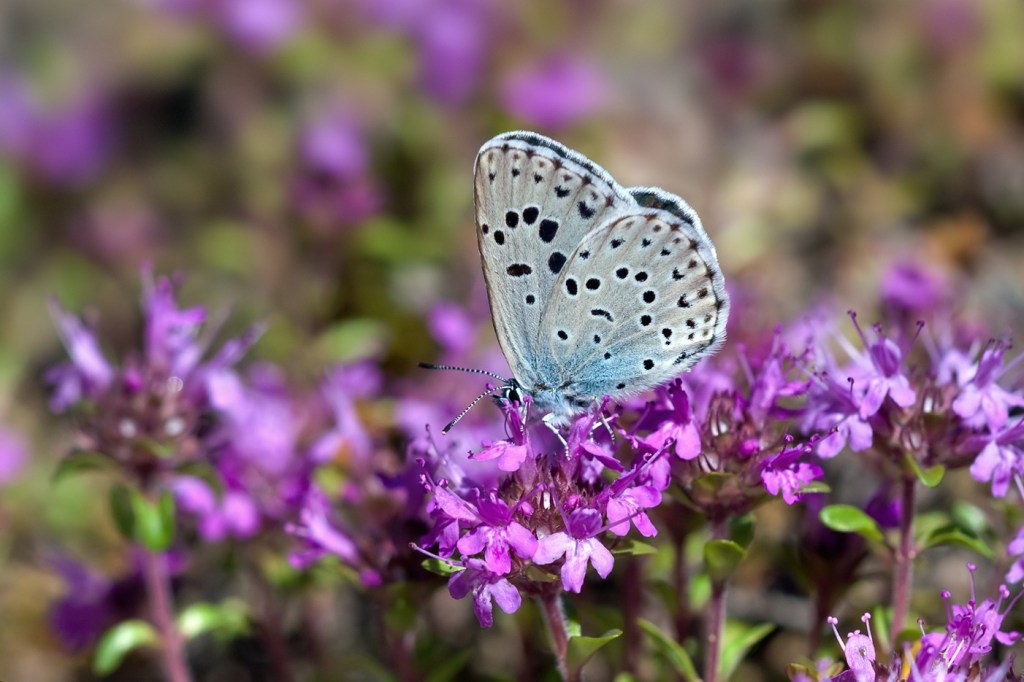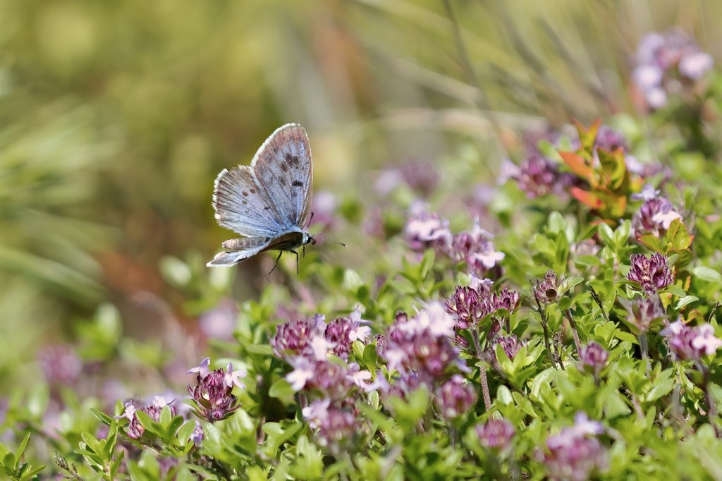 Samaan aikaan muurahaissinisiiven kanssa kangasajuruohoilla voi nähdä isoja hopeatäpliä. Rinnehopeatäplä on paahdeympäristöihin, erityisesti hiekkaisten paahderinteiden ja tienvarsien laji. Ketohopetäpliä näkee rehevämmilläkin paikoilla.