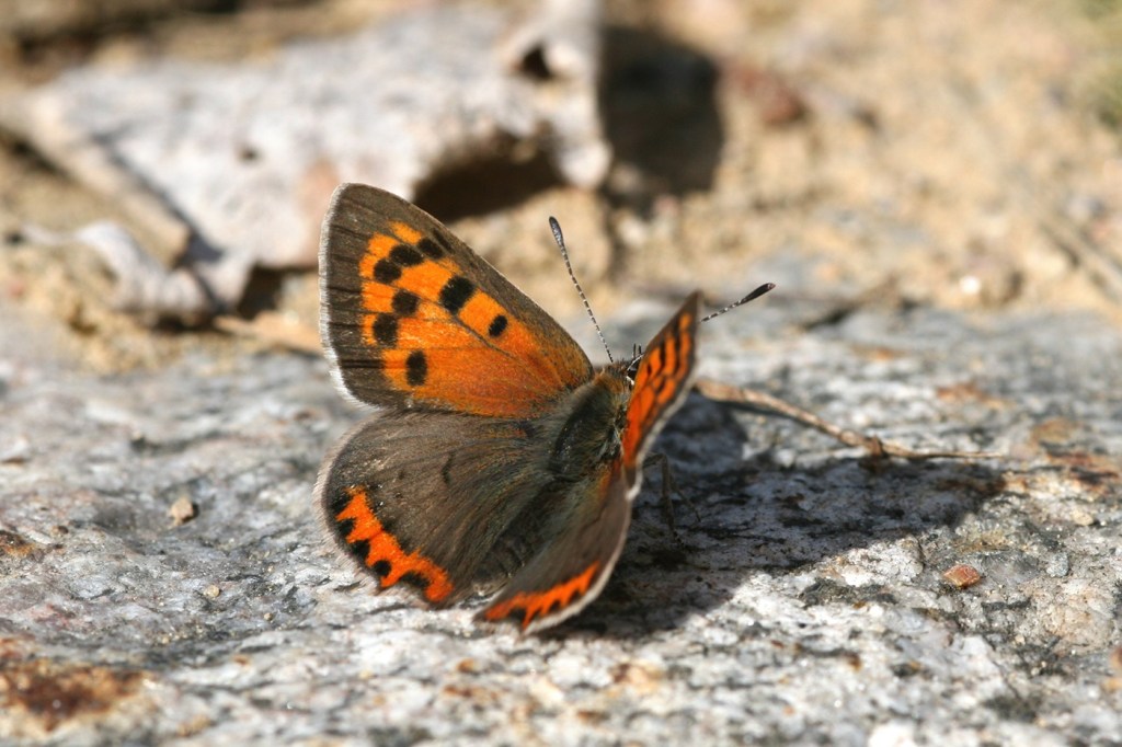 Kedoilla, kallioilla ja harjurinteiden aukkopaikoilla kärvistellään yhtä lailla kuumassa ja kuivassa. Päiväperhoslajeja on silti 14, niiden joukossa muutamia todellisia kalliospesialisteja – niin merenrantakallioiden hietasomersilmä kuin Saimaan kalliosaarten kalliosinisiipi – ja harjumänniköiden paloaukeilla eläviä vaateliaita sinisiipiä. Pikkukultasiipi sen sijaan asuttaa taajaan monenlaisia paahdeympäristöjä.