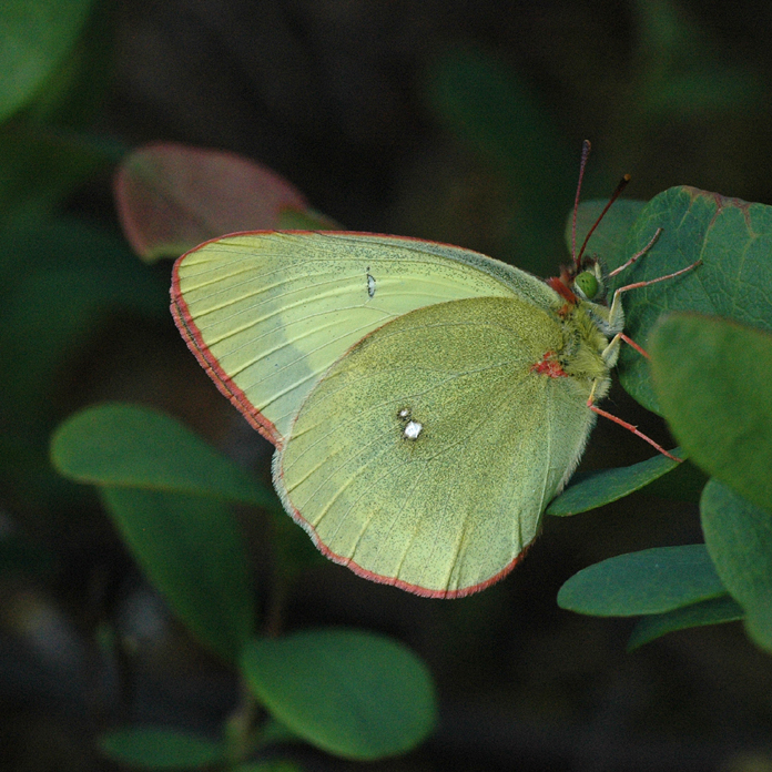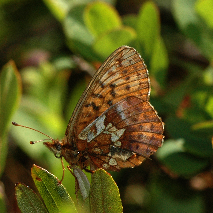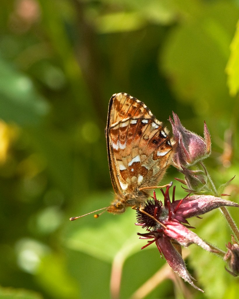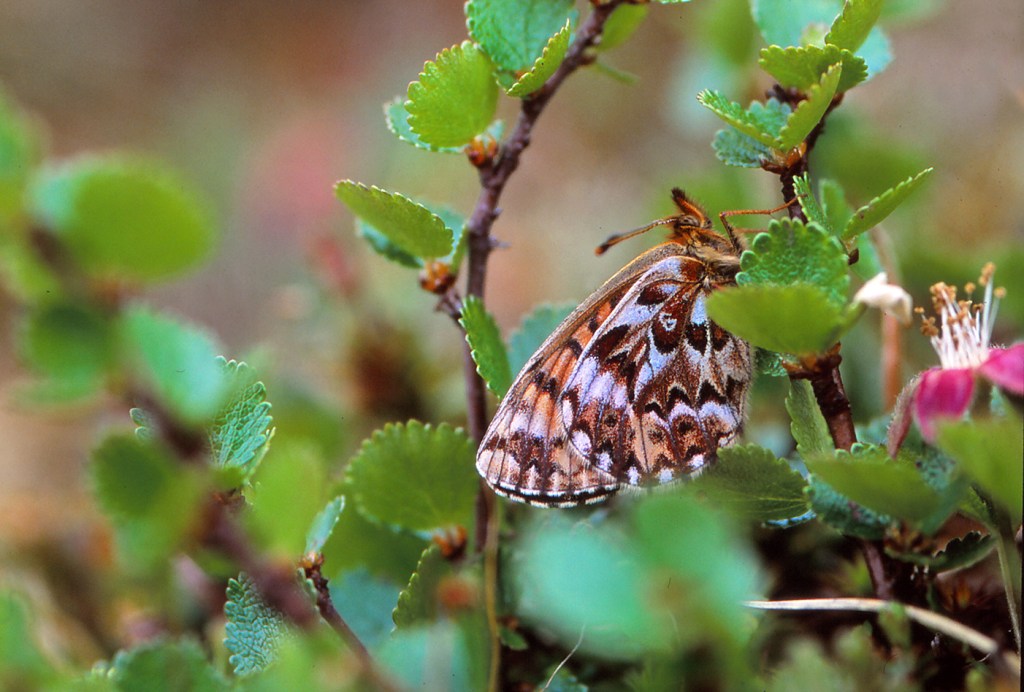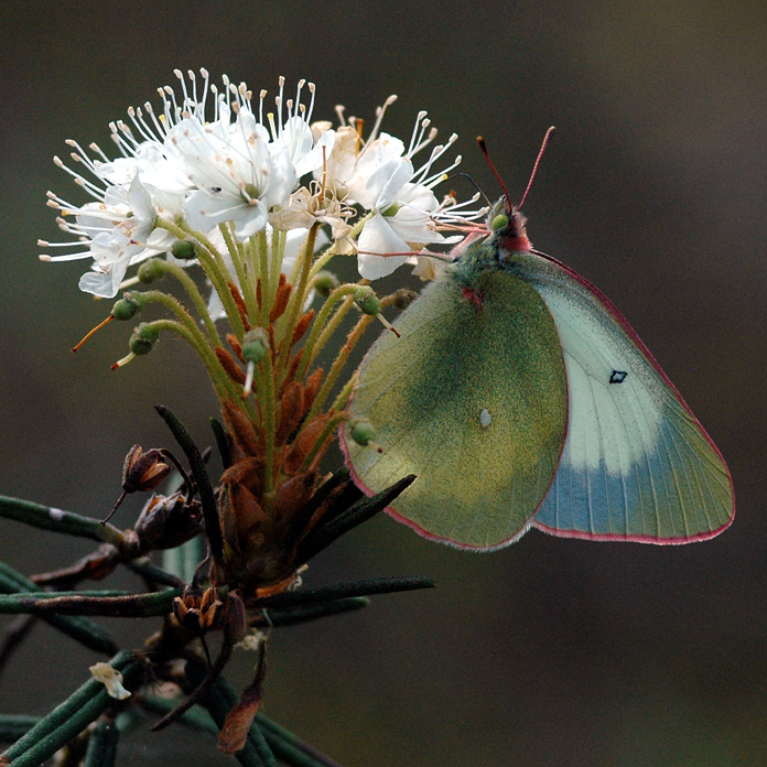Suokeltaperhonen, naaras suopursun kukinnolla