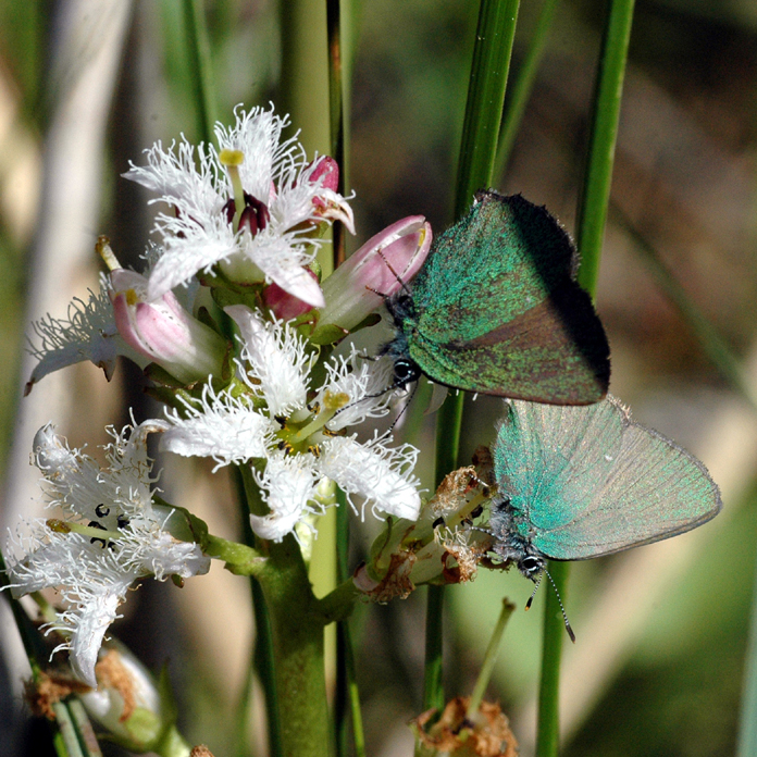 Kun suopursu, raate, kurjenjalka ja karpalo avaavat kukkiaan alkukesän suolla, kukinnoilla voi vierailla myös muiden elinympäristöjen perhoslajeja.