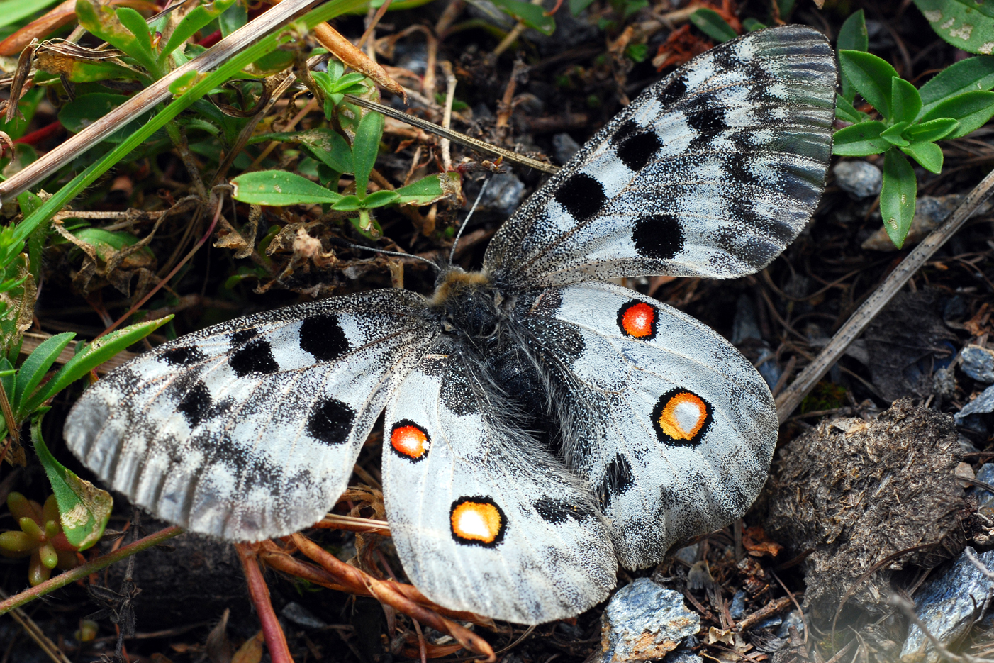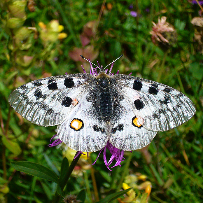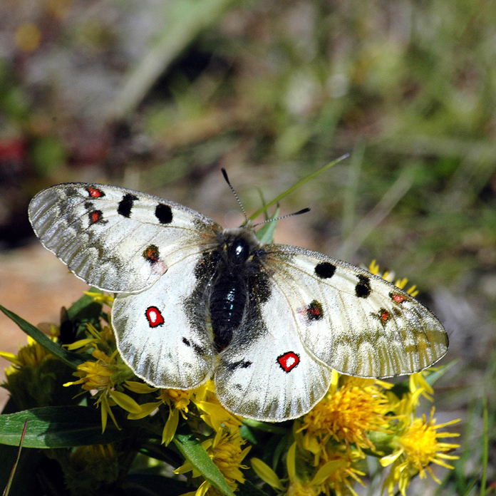 Alppiapollo Parnassius phoebus 7/2007 TH/HA, ylimpänä naaras
