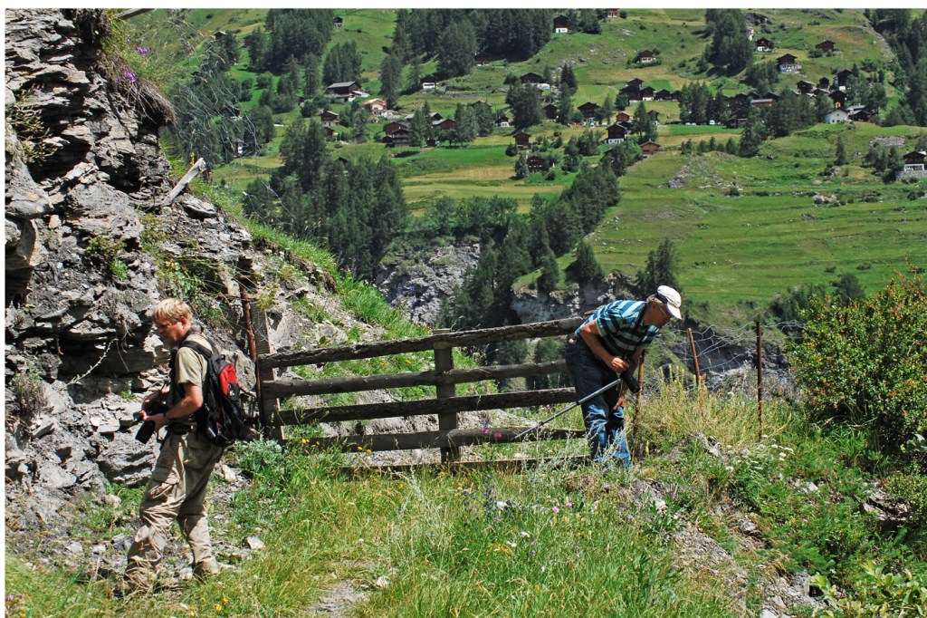 Aamu sateinen ja ajoimme Evoleneen, joka löytyy, kun nousee Rhone-joen laaksosta etelään vuorille. Vanhassa tervatussa museokylässä oli helkutin kylmä, n. 1600 m korkeudella. Iltapäivällä Evolenen ympäristöstä osuimme aurinkoiselle alppirinteelle, siinä solisi puro ja lämmitti kallioseinä. Hienoja sinisiipiä: P. orbitulus, P. dorylas, P. damon, P. icarus, A. nicias, P. arion samalla paikalla! Myös tummaverkkoperhonen (M. diamina). Evolenessa oli mukava ravintola – ”trout” suli suussa ja valkoviini myös.