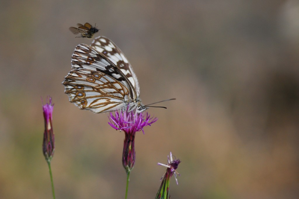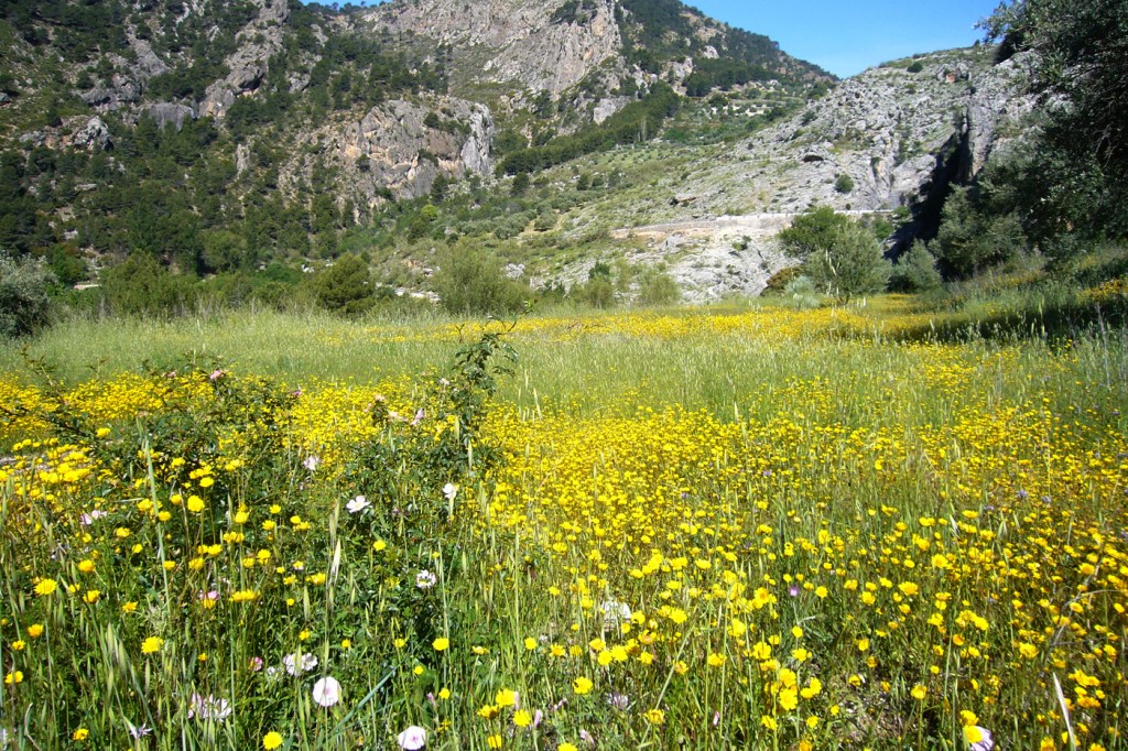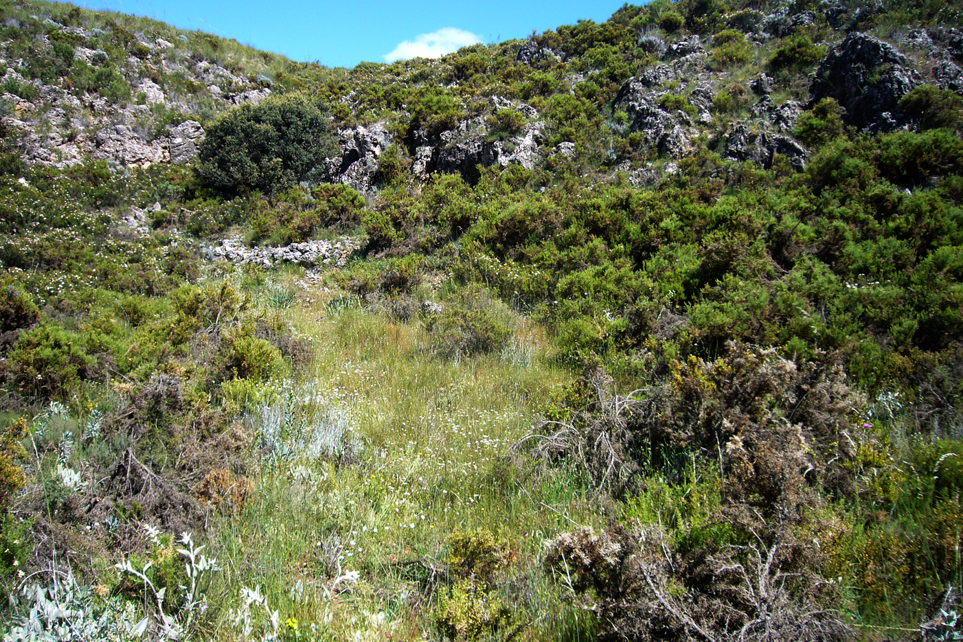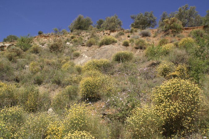 Kuivuneet purouomat kasvavat paikoin tiheää pensaikkoa ja kukkivia ruohoja. Karun maiseman keskellä ne ovat päiväperhoskeitaita, joissa voi tavata harvinaisen espanjanverkkoperhosen Euphhydryas desfontainii. Venta del Fraile 5/2008 HA, PO.