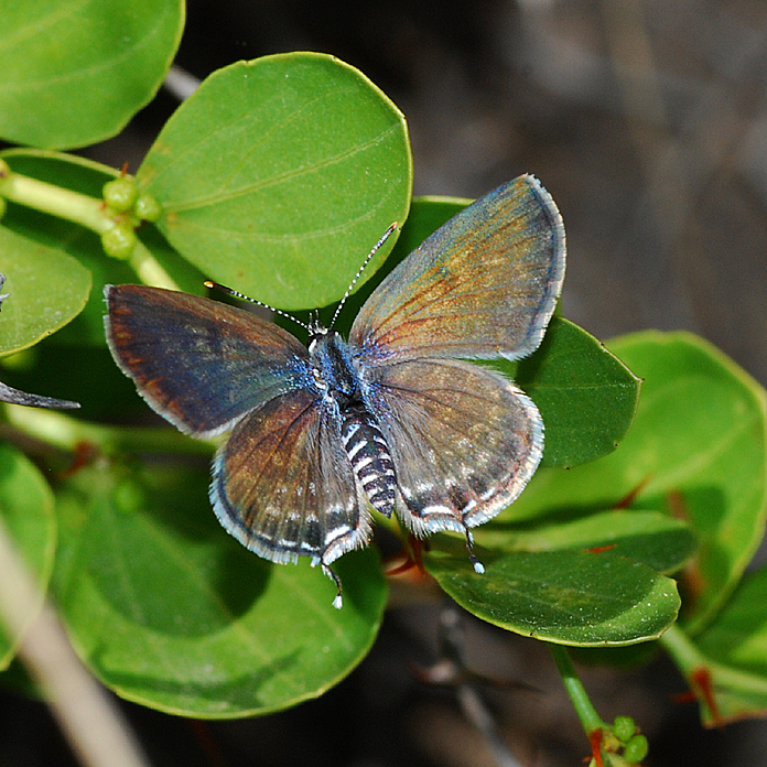 Espanjantiikerisinisiipi Tarucus theophrastus, ylhäällä koiras, alhaalla naaras. Kuvat 5/2008 HA, PO