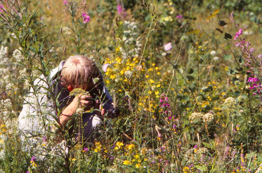 Laatokan Karjalan tyyppikasvin lehtomaitikan (Melampyrum nemorosum) merkillisen violetinkeltaiset kukat sattuvat silmiin horsmien, virnojen, nätkelmien ja apiloiden joukosta. Pitkäkielinen tarhakimalainen ylettää syvänieluisten kukkien mesipohjiin. Kasvilla on monta nimeä: Saksassa Tag und Nacht, Ruotsissa svenska flaggan, Ahvenanmaalla mustalaiskukka. Suuret kruunuohdakkeet jäykistelevät, pienempien pelto-ohdakkeiden ryppäät punertavat. Hiukan kauempana tököttää ”rahamänty” – toinen puoli kuollut, toinen puoli neulasilla.