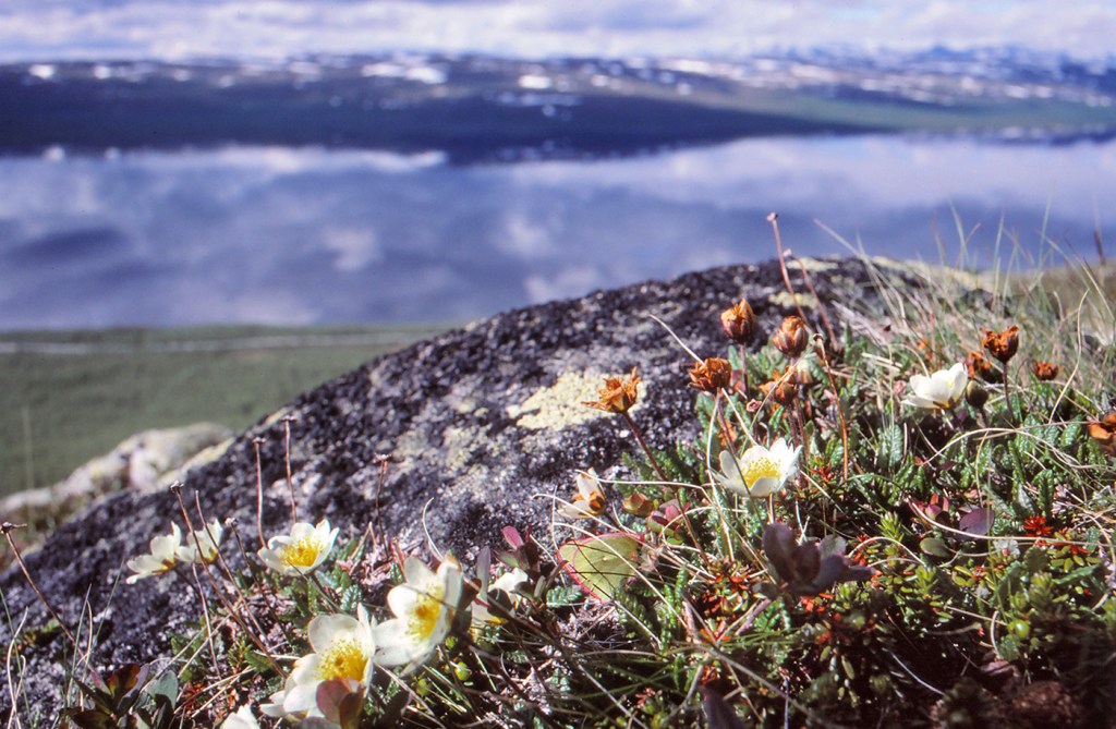 Saanan eteläisen rinteen kalkkilippa avautuu hiukan viettävänä, kivien täplittämänä rehevänä nummena. Siinä on lapin perhosten keskus: huikaiseva auringonpaiste aiheuttaa kipua silmissä. Avaamme repun, lepäämme hetken, rohkein ottaa paidan päältä. Kukaan ei sano hetkeen mitään. Kilpisjärvi on liikkumaton ja kirkkaan valkoiset pilvet heijastuvat syvälle järveen.