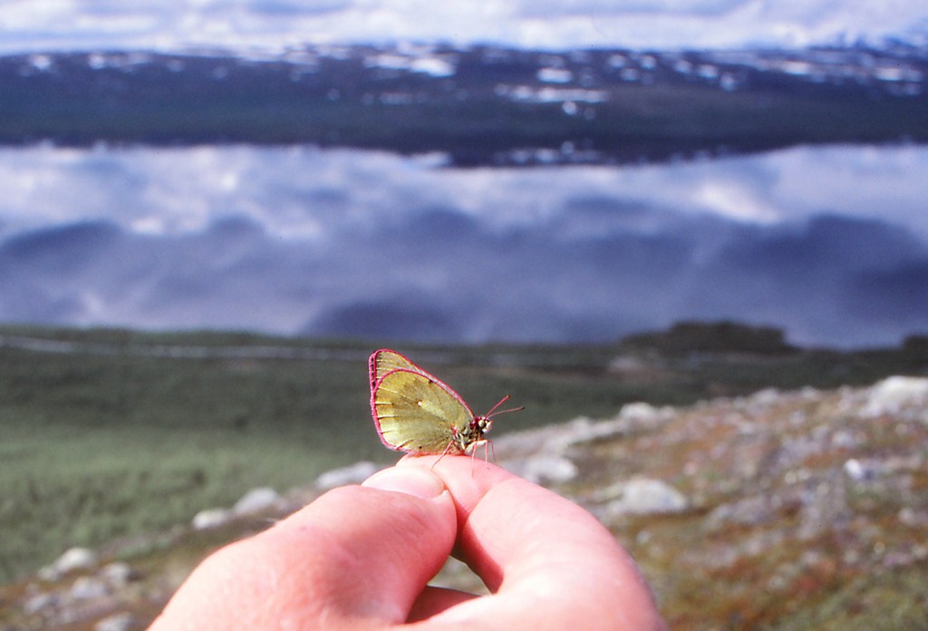 Tunturikirjosiipeä on melkein mahdoton lähestyä. Se lentää kuin kärpänen kivirakassa ja vyörykeiloissa. Alempana painanteiden katajikossa pohjoisen Lapin kellanharmaa, voimakassuoninen lanttuperho on helpompi tapaus. Hölmönä lepattavan lapinnokiperhosen kuvaaminen tuntuu lasten leikiltä, mutta kahta metriä lähemmäksi ei tunnu millään pääsevän. Valjun keltainen sarakylmänperhonen lentää välillä pakoon, mutta jää sitten ihmettelemään värikkäiden jäkälien kirjavoimalle kivelle.