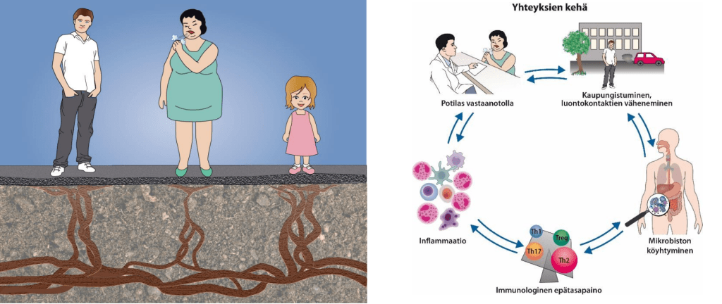 Luontokosketuksen vaikutukset ovat vahvimmat varhaislapsuudessa, mutta vastustuskyky eli terveyden suojavarustus tarvitsee harjoitusta läpi elämän. Näin vähennetään niin infektiotautien kuin allergian, astman, diabeteksen, ylipainon, suolistosairauksien, masennuksen ja jopa syövän riskiä.