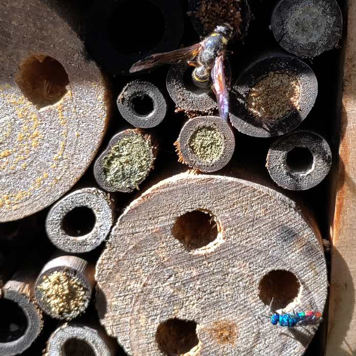 Hyönteishotellin asukkaita