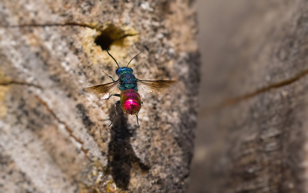 Hyönteishotellin pesät houkuttelevat loispistäisiä. Ne käyvät munimassa mehiläisten ja muiden pistiäisten pesiin, jossa loisen toukka elää koloon kerätyn ravinnon turvin.