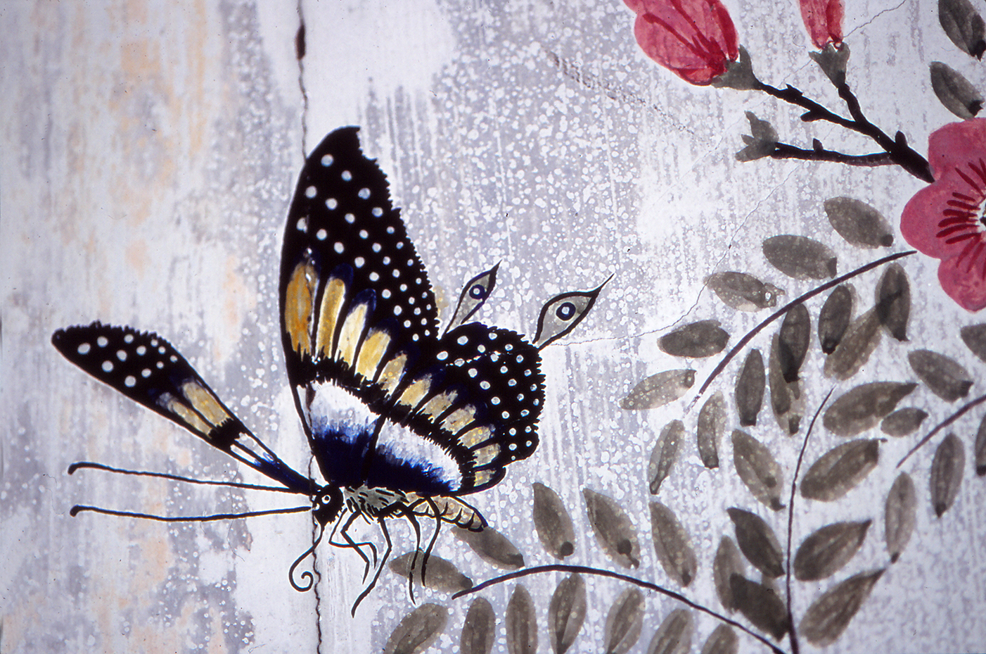 Buddhan ja Siaminkuninkaiden kunniaksi seinämaalaukset, ornamentit, mosaiikit ja lasiset kirjokankaat ovat täynnä köynnöksiä, loputtomia orkideoita, kiipeileviä punaisia liljoja, passionkukkia ja keltaisia kynttiläkukkia. Kuvat kertovat vaaleanpunaisista sateista, sitruunoista, lintukaktuksista, papukaijoista, valkoisista kakaduista, pieninokkaisista undulaateista, kultakaloista ja tulenpunaisista karpeista, pyöreäsilmäisistä kyyhkysistä, mustista joutsenista, käärmepäisistä kaloista, siamilaisista tiikerikaloista, pienenpienistä sinisistä päivänkukista, mustalehtisistä sotkuisista hämähäkkikukista, hennonpunaisista mimoosan terälehdistä, jäykistä krokotiilinkielistä, hermoston lamaavista kuningaskobrista ja hornankyistä, lopullisen vuodon aiheuttavista vihreistä kyistä. Mutta vain yksi kuva perhosesta.