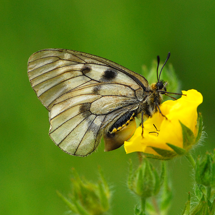 Pikkuapollo (Parnassius mnemosyne) sai kuvauksensa ja nimensä historiallisena vuonna 1758. Mistä mnemosyne? Kreikkalaisessa tarustossa Mnemosyne personoi muistia, mustin virtaa, muistin lähdettä vastakohtana Lethelle, unohduksen virralle. Zeus makasi Mnemosynen kanssa yhdeksänä perättäisenä yönä ja niin syntyivät yhdeksän muusaa. Mitä Linnaeus muisti antaessaan yhdelle kauneimmista päiväperhosista nimen Mnemosyne? Emme tiedä, mutta voi kuvitella että ensimmäinen näky pikkuapollosta kukkia ryöppyävällä niityllä on jäänyt pojan mielen ikiajoiksi.