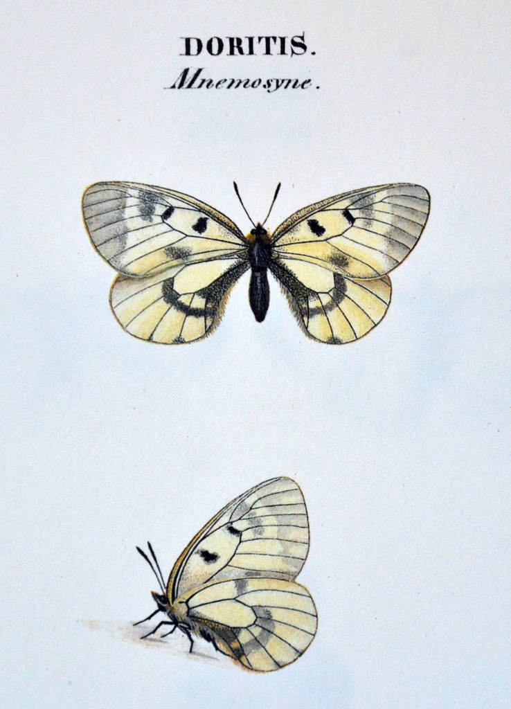 Kuva Linnaeuksesta on lainattu netistä (Carl Linnaeus Unit and Interactive Notebook). Doritis Mnemosyne, nykyään Parnassius mnemosyne, on Wilhelm von Wrightin kirjasta Swenska Fjärilar (1828-1835) (näköispainos, Rene Coeckelberghs Editioner 1989).