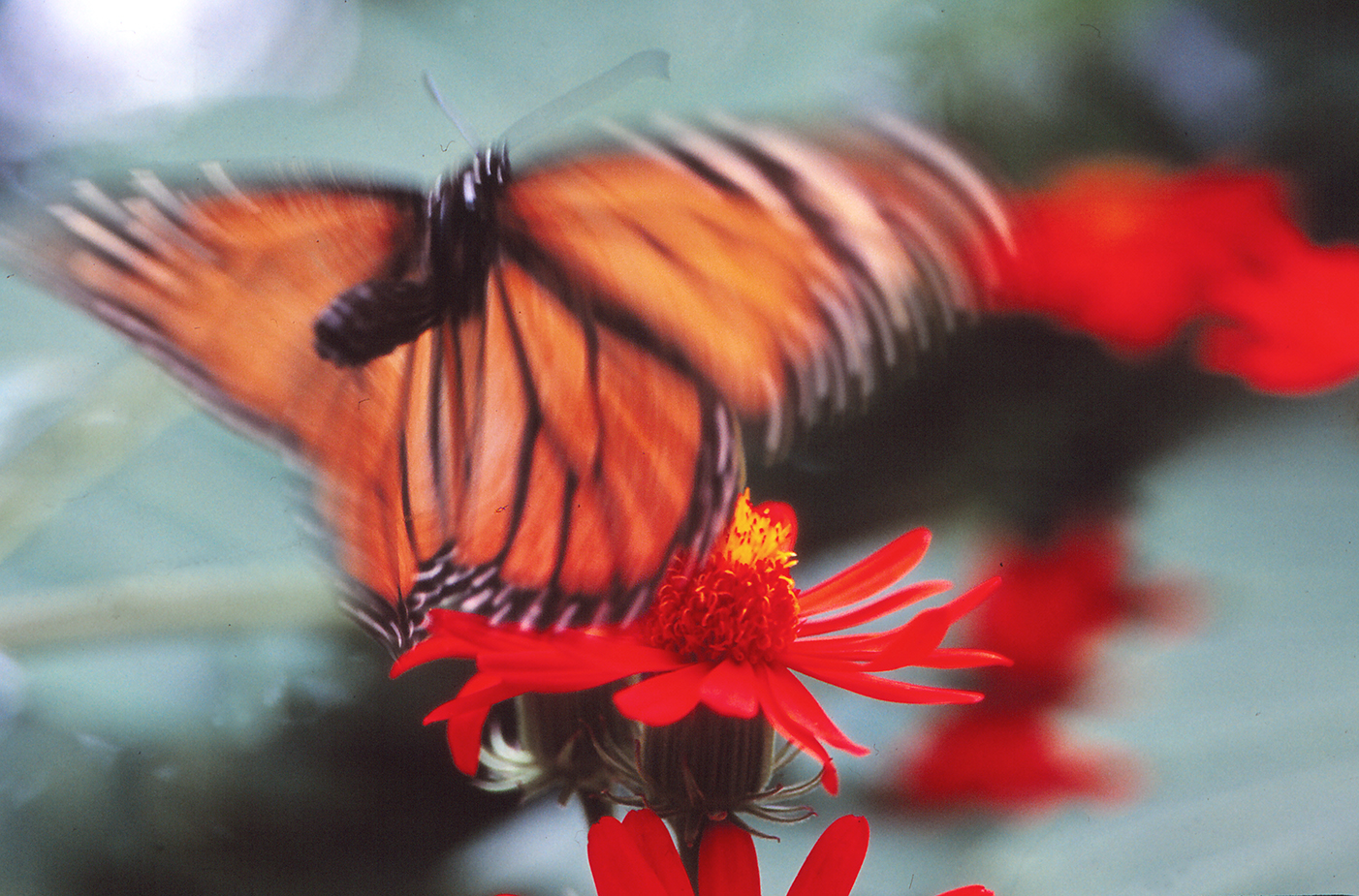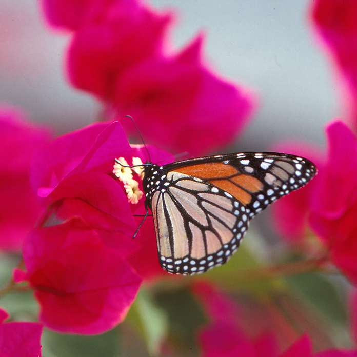 Helmikuussa 1992, neljännesvuosisata siitä, kun isä laittoi monarkin pulloon olen Gran Canarialla, Puerto Ricossa. Puistoaukiota ympäröivät samat vanhat viuhkamaiset palmut. Yhtä lailla mustanvihreät hibiscuspensaat ja keltakukkaiset heisipuut, joiden lehvästöön bougainvillan purppurajonot ovat kietoutuneet. Maksaruohomatto valuu vihreää maitoa ja anopinkielet nousevat posliinikukkien merestä kuin keihäänkärjet. Miekka-agaven on vallannut tiheä seitti, jossa paksut kärpäset pyristelevät. Värien kerrostamat pienet kukkamykeröt paljastuvat tuhansien liljamaisten mesikuppien mereksi. Monarkki leijaa levollisesti ja lentää tuskin havaittavalla liikkeellä aukion poikki. Jää monen metrin korkeuteen ohuiden runkojen kannattamalle joulutähtien punaiselle lavalle. Perhonen hengittää koko ruumiillaan, imee sinistä ilmaa pullon tukahduksesta kirvonneiden siipien intohimolla. Se hehkuu.