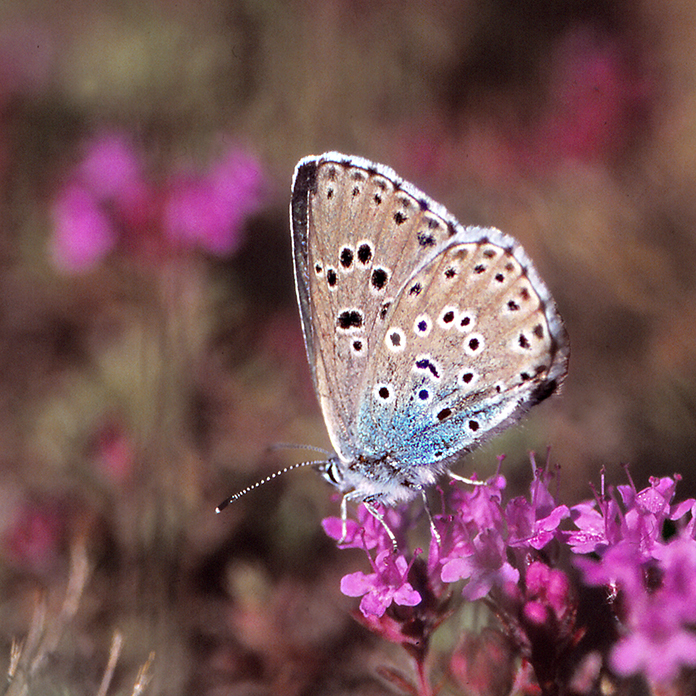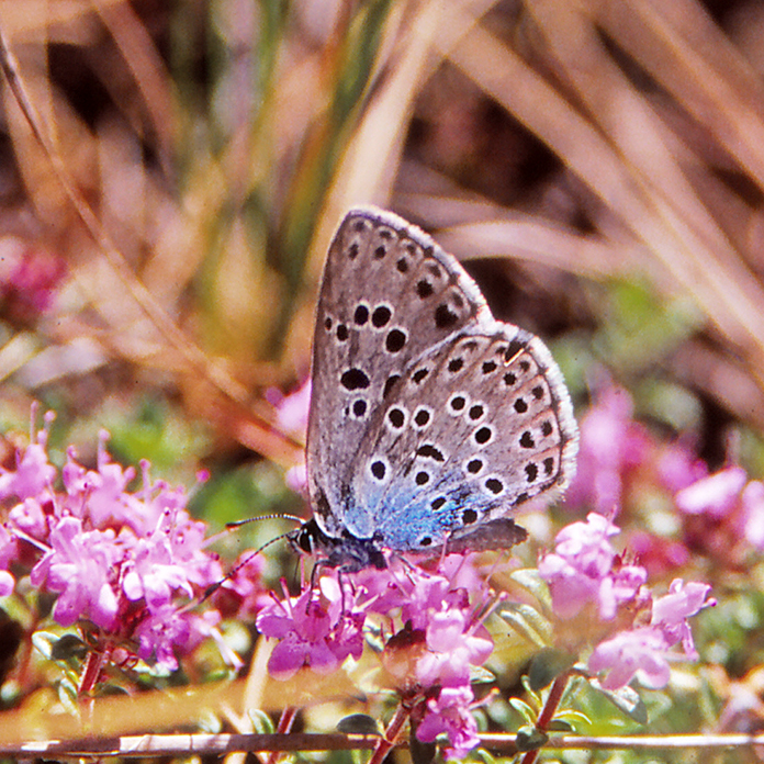 Perhosen toukka elää aluksi ajuruoholla. Kymmenennessä jaokkeessa on rauhanen, jonka eritettä muurahaiset lypsävät. Muurahaiset vievät toukan pesään ja pitävät sitä siellä yli talven kuin lypsylehmää navetan pimennossa. Toukka herkuttelee pienillä muurahaisten toukilla, pulskistuu, koteloituu ja kuoriutuu aikuiseksi keskikesällä. Suuri, hohtavansininen perhonen, jonka siivissä on syvänmusta reuna ja pippuria. Merkillinen perhonen, aurinkoisten rinteiden, kangasmaiden ja harjujen sädehtivä kaunotar.