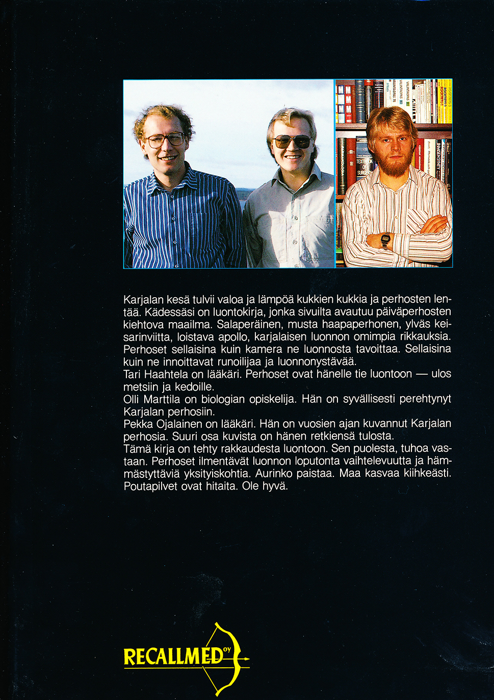 Perhosveljien taival perhoskirjojen tekijöinä alkoi vuonna 1985 julkaistusta Runon ja rajan perhoset (Recallmed Oy). Kirjassa Olli Marttila kertoo, kuinka hän kasvatti häkissä yhtä maamme komeimmista päiväperhosista, keisarinviittaa (Argynnis paphia).