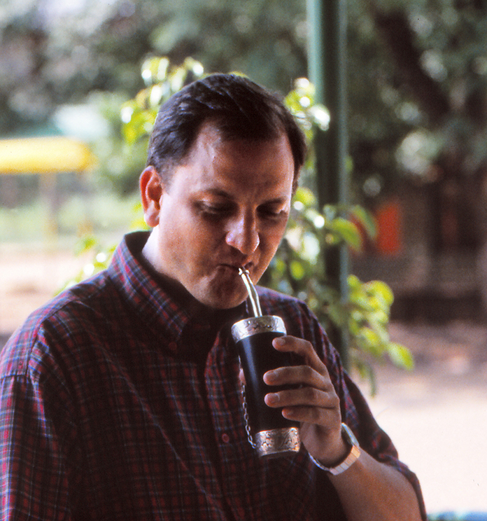 Elektroniikkaa ja kodinkoneita pursuaa yli äyräiden, 60 % halvempaa kuin Brasilian puolella, ja ostajat ryntäävät kuin heinäsirkkalaumat. Vain muutama vihreä puu kadun vieressä, kulkukoirat tonkivat pakkausjätteitä, tuuli kuljettaa pahvia ja styroxia pitkin katuja. Mustaan, hopealla heloitettuun häränsarveen laitetaan vihreää purutöhkää ja vettä, Ratti tarjoaa imettäväksi täkäläistä teetä, herva mattea. Imaisen kohteliaasti ilman intohimoa.