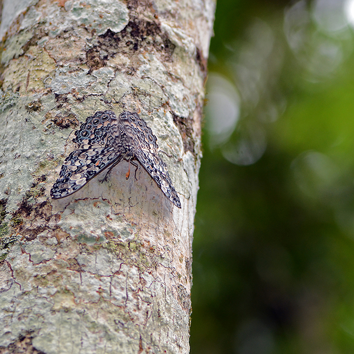 Hannu tähtäilee kameraansa metsässä ja osuu upeaan täpläperhoseen, punanauhakapteeniin (Anartia amathea). Harmaan puun rungolle, melkein näkymättömiin ja tyypillisesti pää alaspäin singahtaa harmoritisiipi (Hamadryas februa). Keskelle polkua lennähtää Etelä-Amerikan upeimpia perhosia, sankaritaivaansiipi (Morpho achilles), joka nostaa pusikossa siivet pystyyn ollakseen mahdollisimman huomaamaton.