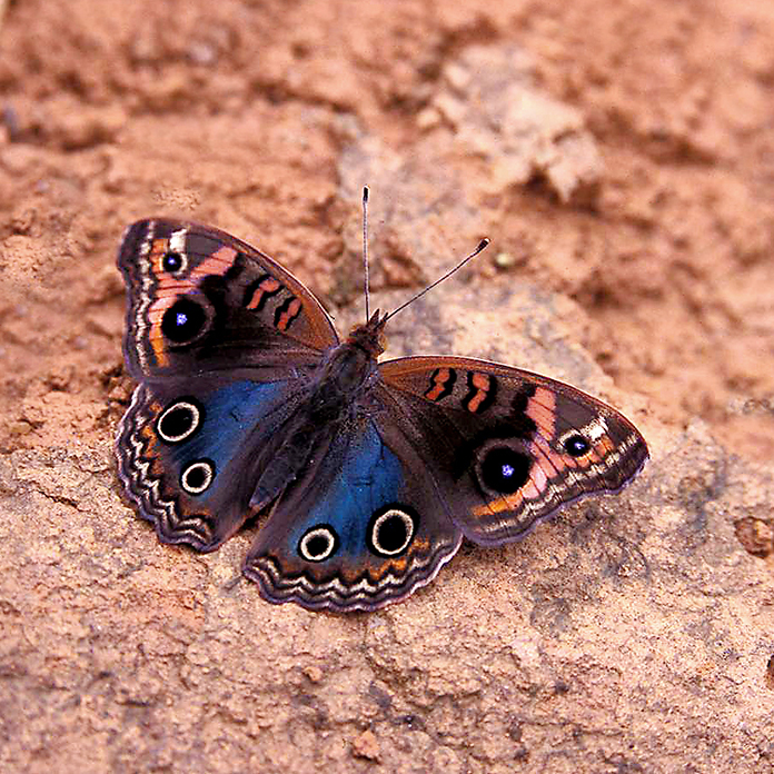 Pikkutilalla on helvetin kuuma. Ratti puhuu käsittämättömiä varjoisessa katoksessa istuskelevien intiaanien kanssa, jotka hoitavat tilaa. On puolipäivä. Poika tuo kaksi ruskeaa ratsua, Ratti ponnahtaa toisen selkään ja houkuttelee Joelin kokeilemaan toista. Satuloita ei käytetä. ”Jahuu”, Ratti kirmaa kierroksen, hanhet tööttäävät peloissaan ja koreat kukot saavat kannukset alleen. Sinne putoavat aurinkolasit pitkään ruohikkoon. Intiaanipoika etsii niitä kuin hidastetussa filmissä soitellen samalla huuliharppua. Löydän pusikosta upean keltaisen nymphalidin ja toisen, jonka hillityn sinisissä takasiivissä on kahdet silmätäplät. Tulee mieleen sininen riikinkukko, tarkistan myöhemmin, rusotähystäjä (Junonia evarete).