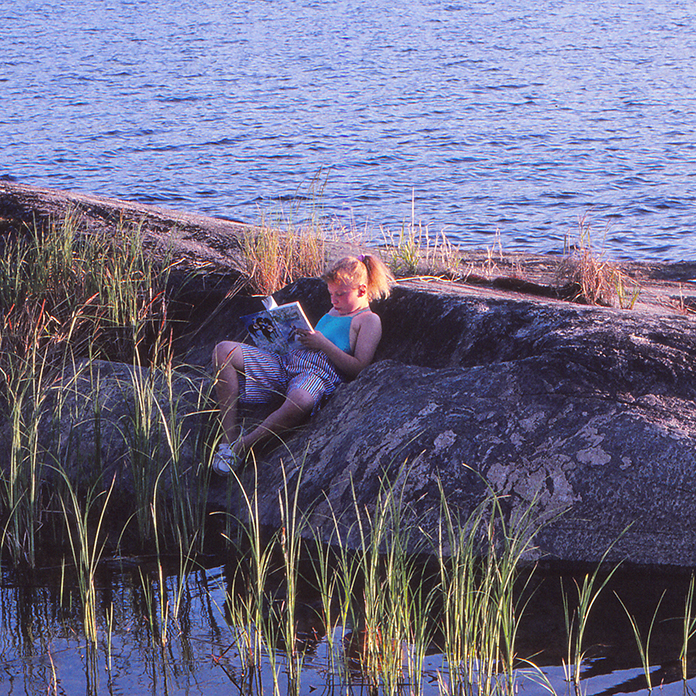 Olemme Tiurun selällä ja tunnin purjehduksen jälkeen Satamosaaressa, jossa on loistava hiekkaseinäinen luonnonlaguuni. Mutta emme jää siihen, vaan sukellamme saaristoon välittämättä reimareista ja linjoista, tämän veden tunnemme vaikka pimeässä ja sumussa. Hyvässä myötäleessä liu´umme Pullikaisen ja Kaitosaaren välistä. Kaitosaaren kolmiomittaustorni saa lahota paikalleen ja laskettelemme kohti Karvasalon kylkeä. Siellä on perimätiedon mukaan mahdottomasti kyykäärmeitä ja sen verran on aina puistattanut, että emme ole tarkistaneet tiedon pitävyyttä. Aallonharja taittuu jo vaahdoksi ja tuuli on nyt sen verran sivusta, että genua alkaa kallistaa venettä turhaan, se leikkaa vauhtia. Suunta kohti Suurta Mäntysaarta, jossa on Lappeenrannan veneilijöiden tukikohta vankkoine laitureineen, grillikatoksineen ja saunoineen. Ilkonselkä on jäänyt reilusti vasemmalle, siellä on nähty eteläisen Saimaan viimeiset norpat. Niillä ei ole tuolla alueella tulevaisuutta. Kymmene Oy:n Kaukaan tehtaan ja Joutseno Pulpin jätevedet pilaavat norpan uimavesiä, ja mökkeily ja veneily vievät rauhan.