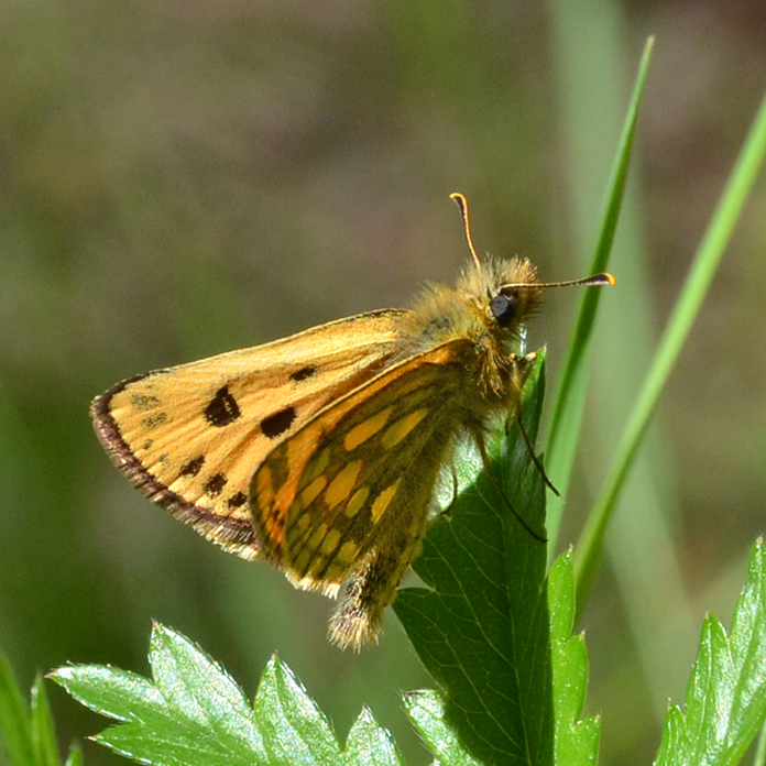 Mutta perhoset pitävät näistä avoimista ja puoliavoimista ympäristöistä, joihin aurinko paistaa esteettä. Verkkoperhosia lentelee laiskasti ja kirjoverkkoperhosen naaraat lekottavat pikkupihlajien oksilla. Paksupäitä vilistää joka paikassa, piippopaksupää on kauniin kellanruskea ja korrella istuessaan se pitää siipiään eri tasoissa kurkottaakseen iltapäiväauringon vaimenevan lämmön. Mustatäplähiipijä hiipii varjossakin ja imee mettä jo kulahtaneista kurjenpolvista ja tuoreista puna-apiloista, vaikka pilvi on edessä. Metsäpapurikko on aivan rieskana eikä pursuhopeatäplästäkään ole paljon mihinkään, ikä painaa. Kun metsä taas joskus umpeutuu, perhoset häviävät. Ehkä toinen saari on sahan jäljiltä keskeltä kalju, kannattaa käydä katsomassa.