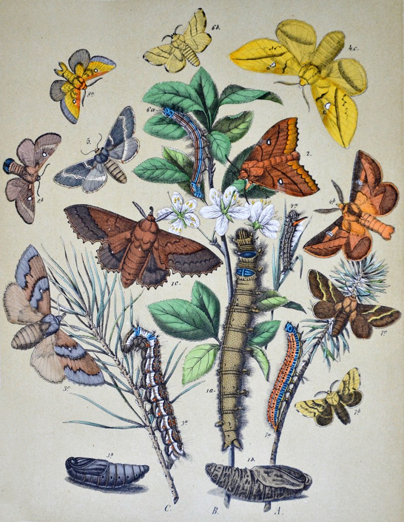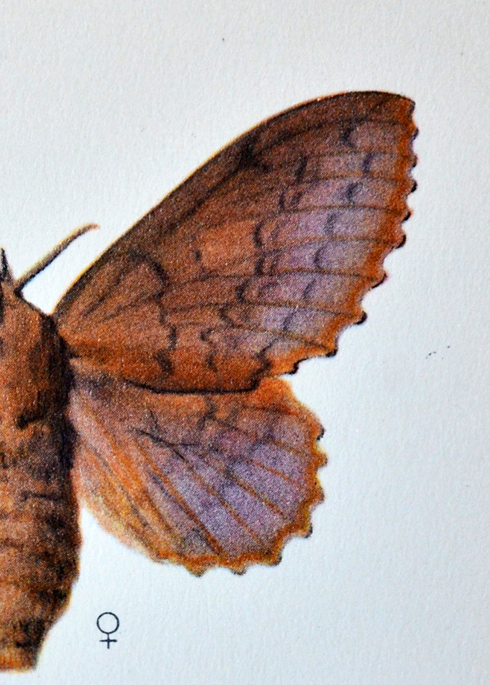 Uskomatonta! Yksi toukkakehto on muodostumassa telkkarin harmaalle takapinnalle! Myöhemmin kesällä asetin kotelosta vapautuneen, aikuisen tumman lehtikehrääjän, nykynimeltään pihlajanorsun (Gastropacha quercifolia) pihlajanoksalle. Pihlajanorsun kuparipainatuskuvat ovat peräisin kirjoista F. Nordström, E Wahlgren: Svenska Fjärilar 1941 ja C. Aurivillius: Nordens Fjärilar 1888-1891.