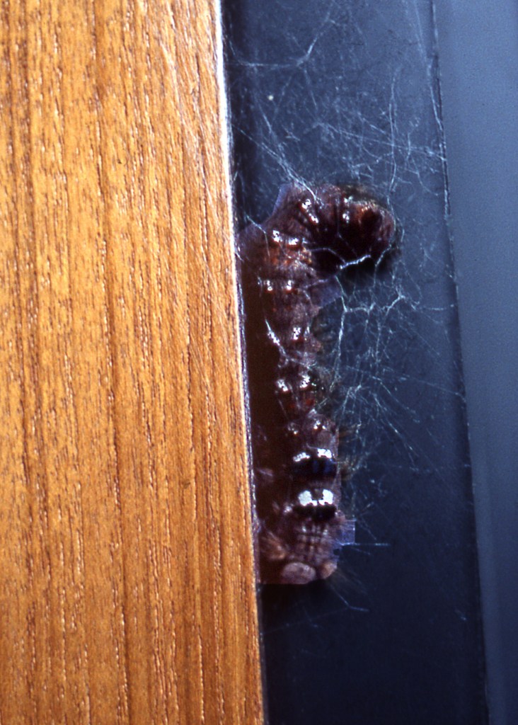 Minä ampaisen pystyyn kuin ampiaisen pistämänä. Monena vuonna olen kytännyt tummaa lehtikehrääjää. On poltettu perhosvaloa, on etsitty toukkia ja koteloita, on yritetty kasvattaa. Ja aina jokin on mennyt poskelleen. Viime syksynäkin jo melkein tulitikun mittaiset toukat rupesivat kuolemaan syyttä suotta, vaikka hellyydellä hoitelin niitä pitkin kesää. Nyt vihdoin olin saamassa kasvatuksen onnistumaan. Toukat olivat meheviä kymmensenttisiä ahmatteja, jotka riisuivat sylillisen pihlajanoksia muutamassa päivässä. Koteloituminen oli lähellä.