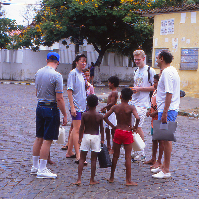 Martti puhuu portugalia terassille ilmaantuneen vanhan miehen kanssa. ”Fotografio, Fotos na Hora.” Valokuvaaja kuvaa maksusta turisteja, jota hän tehnyt 27 vuotta vuoden jokaisena päivänä.