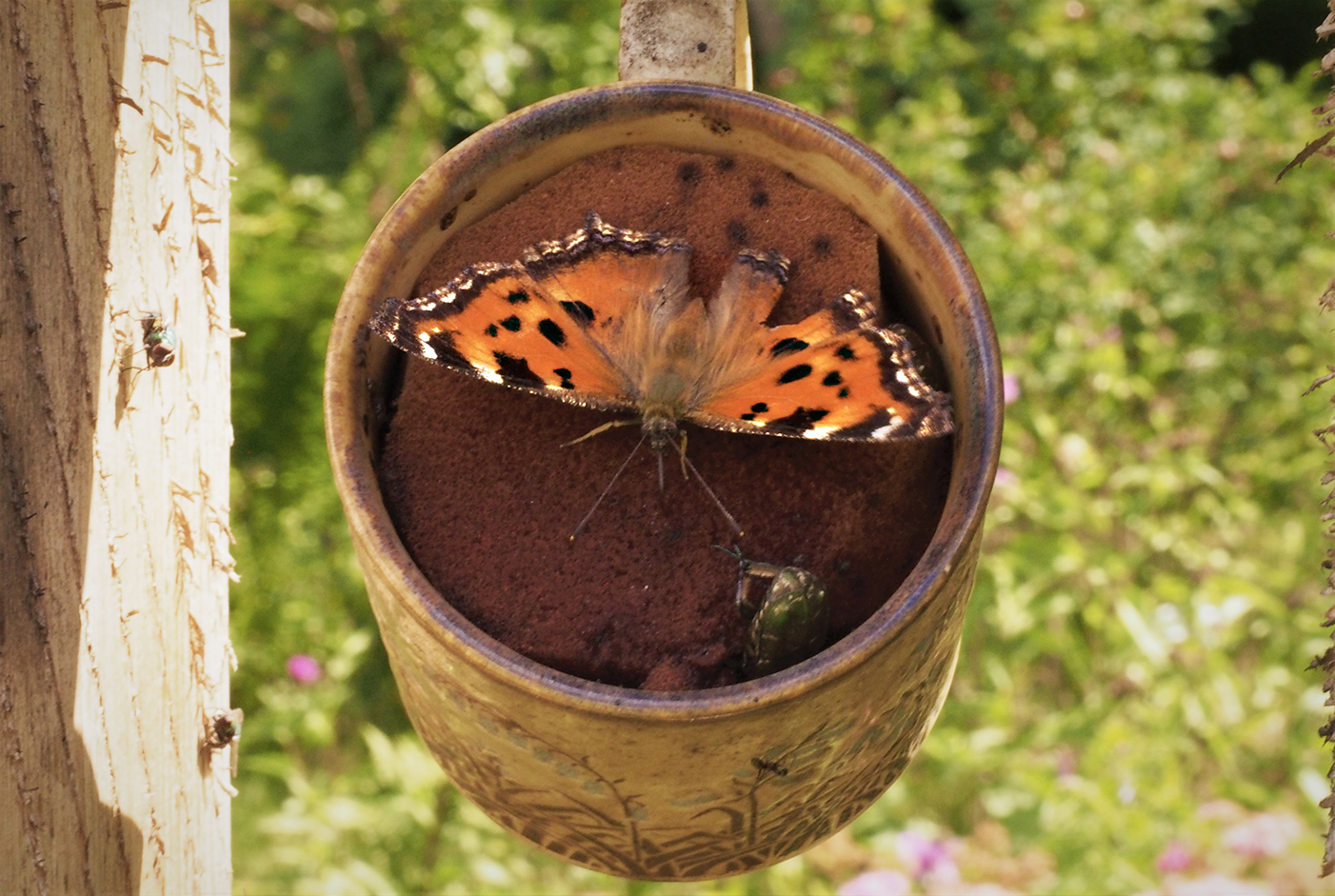 Kuppiin on löytänyt tiensä harvinaisuus, isonokkosperhonen (Nymphalis xanthomelas), joka on vaeltaja, mutta jolla saattaa olla kaakkoisessa Suomessa myös pieni vakituinen kanta. Seuraksi on vielä samana päivänä pölähtänyt häiveperhonen. Myöhemmin kesällä 2023 baariin tulee myös ruostenopsasiipi.