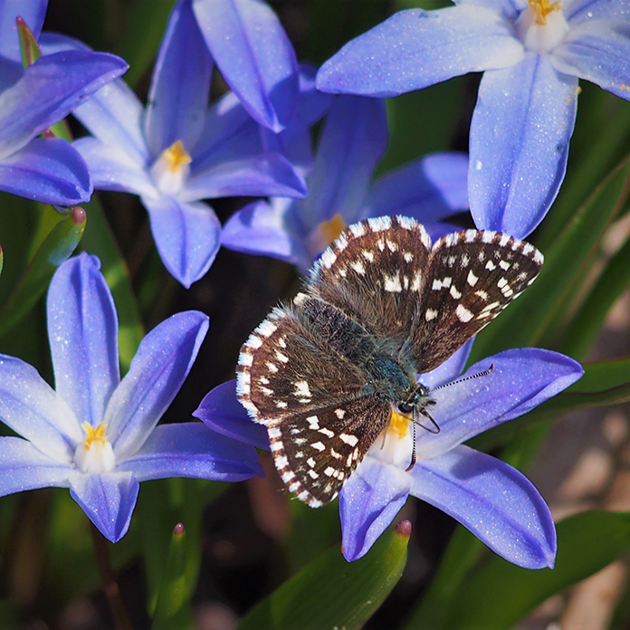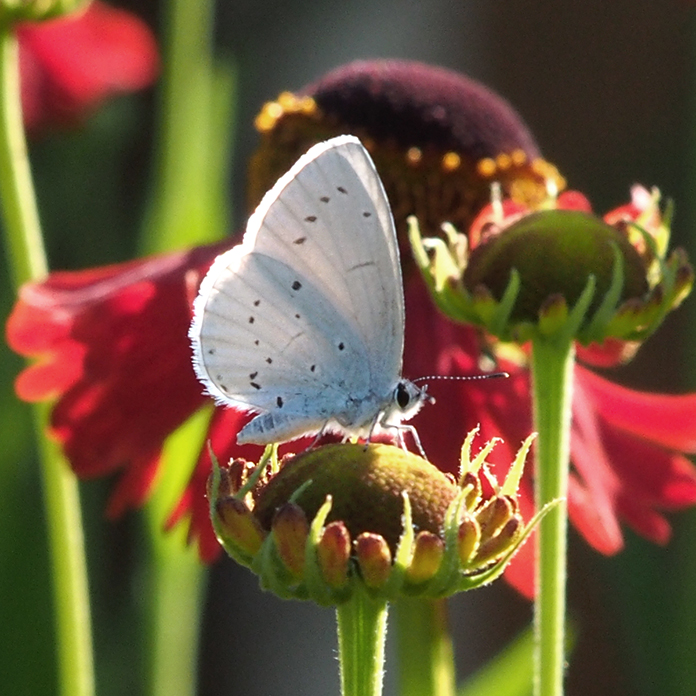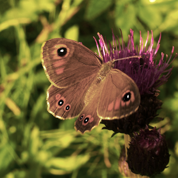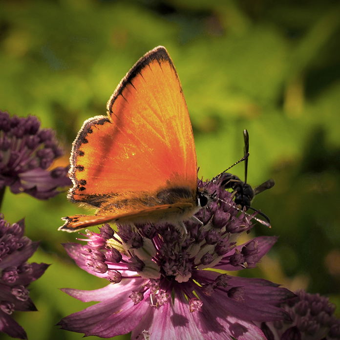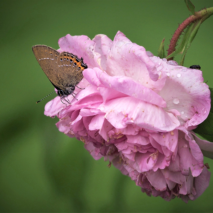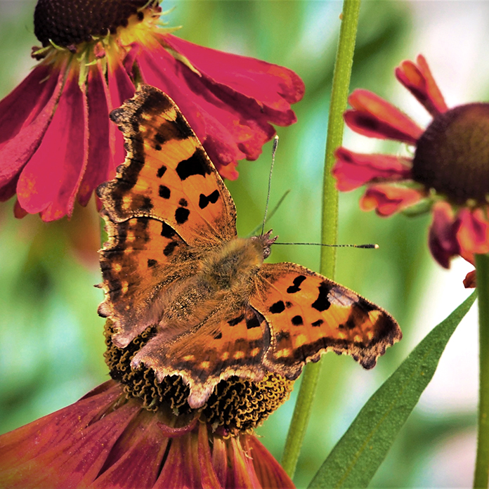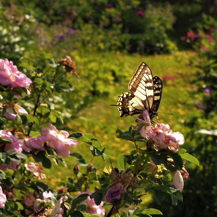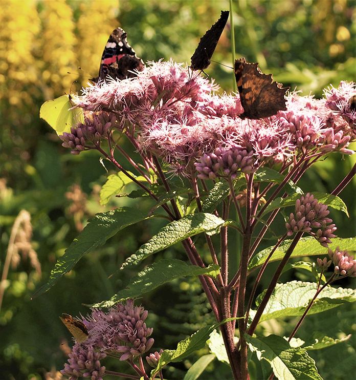 Kasvien valinnassa suosimme hyviä mesikasveja, jotka luovat monipuolisen elonyhteisön ja rikastuttavat pihamme elämää. Hyönteisille on tarjolla kukkivia kasveja maaliskuun sipulikukista aina lokakuun astereihin saakka. Päiväperhoset ovat aina olleet mielenkiinnon kohteenani, vaikka olen nuoresta lähtien ollut lintumies. Perhoset ovat viimeisen vuosikymmenen aikana saaneet enemmän huomiota, kun puutarhan lisääntynyt monimuotoisuus on houkutellut lisää lajeja ja yksilöitä.