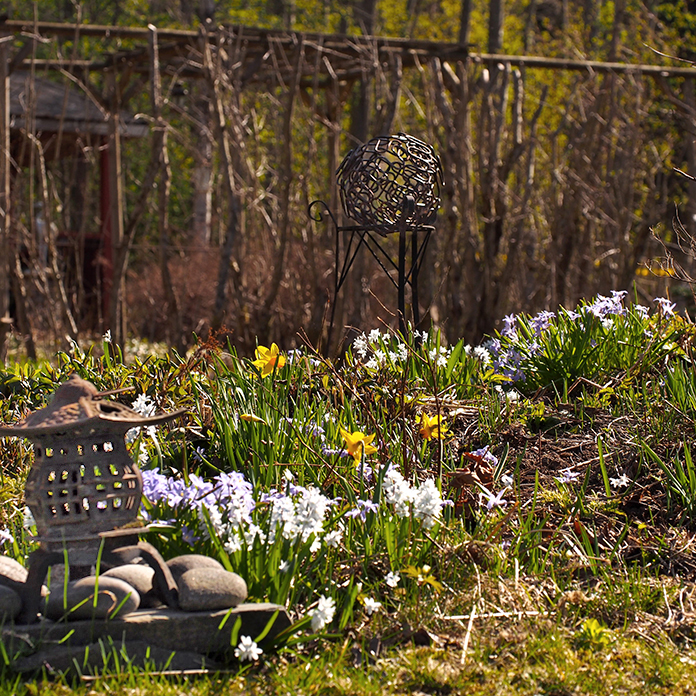 Ostimme vaimoni kanssa vuonna 2000 Suomusjärveltä neljän hehtaarin pientilan, joka oli ollut pitkään asumattomana. Nokkoset, maitohorsmat ja vadelmat olivat vallanneet ympäristön, mikä merkitsi, että maa oli multavaa ja elinvoimaista. Tilalla sijaitseva vanha, rehevä lehtometsä tarjosi mahdollisuuden luoda suojainen puutarha. Tarkoitus oli tehdä paikasta mahdollisimman luonnonmukainen. Länteen avautuva loiva rinne oli aurinkoinen ja tulvi valoa. Aloin hoitaa talon alapuolella sijaitsevia alueita niittämällä ja kylvin muun muassa ruusuruohon ja purtojuuren siemeniä. Rinteen rehevämpään yläosaan ryhdyimme perustamaan puutarhaa, jonne toimme entisestä paikastamme nauhuksia ja muita perennoja. Vuosien myötä ostimme ja saimme lisää perennoita, puita ja pensaita. Pihasta alkoi muodostua mieleinen kovan yrittämisen, erehdysten ja sattumien summana.