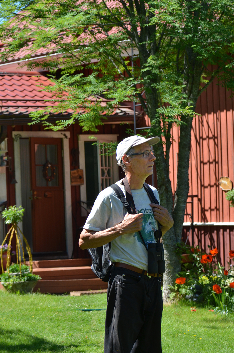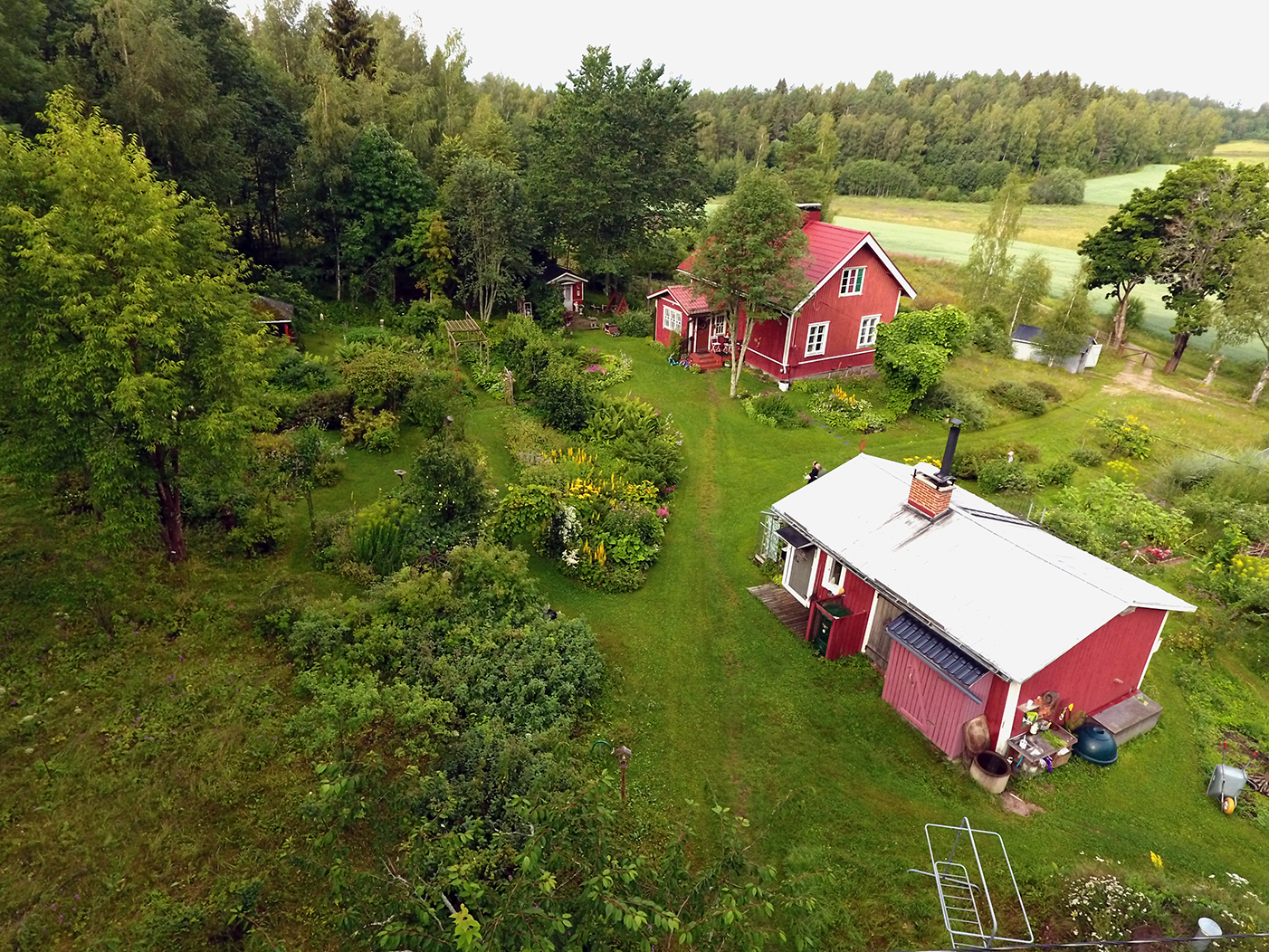 Juha valmiina retkeilemään omassa puutarhassaan. Veli-Matti Salmela on ottanut droonikuvat talon edestä ja takaa.