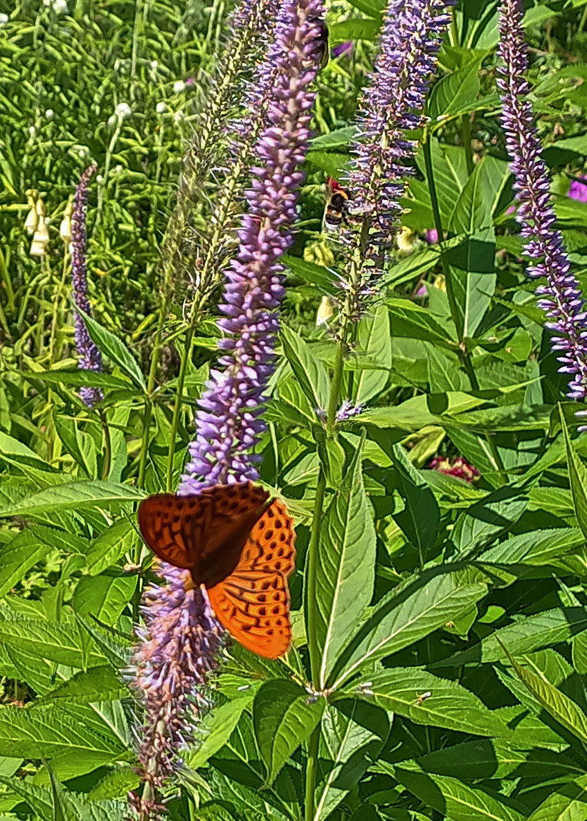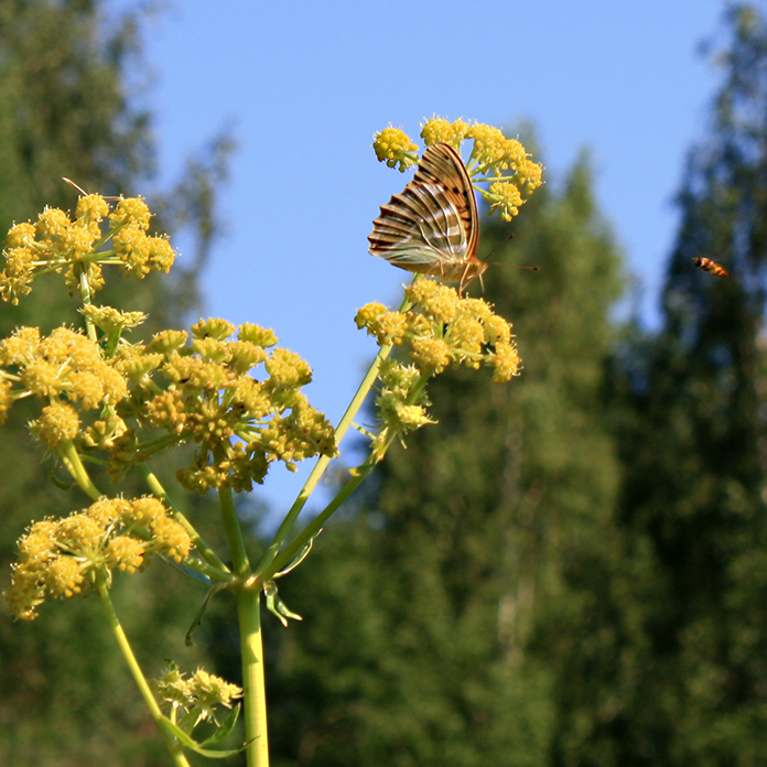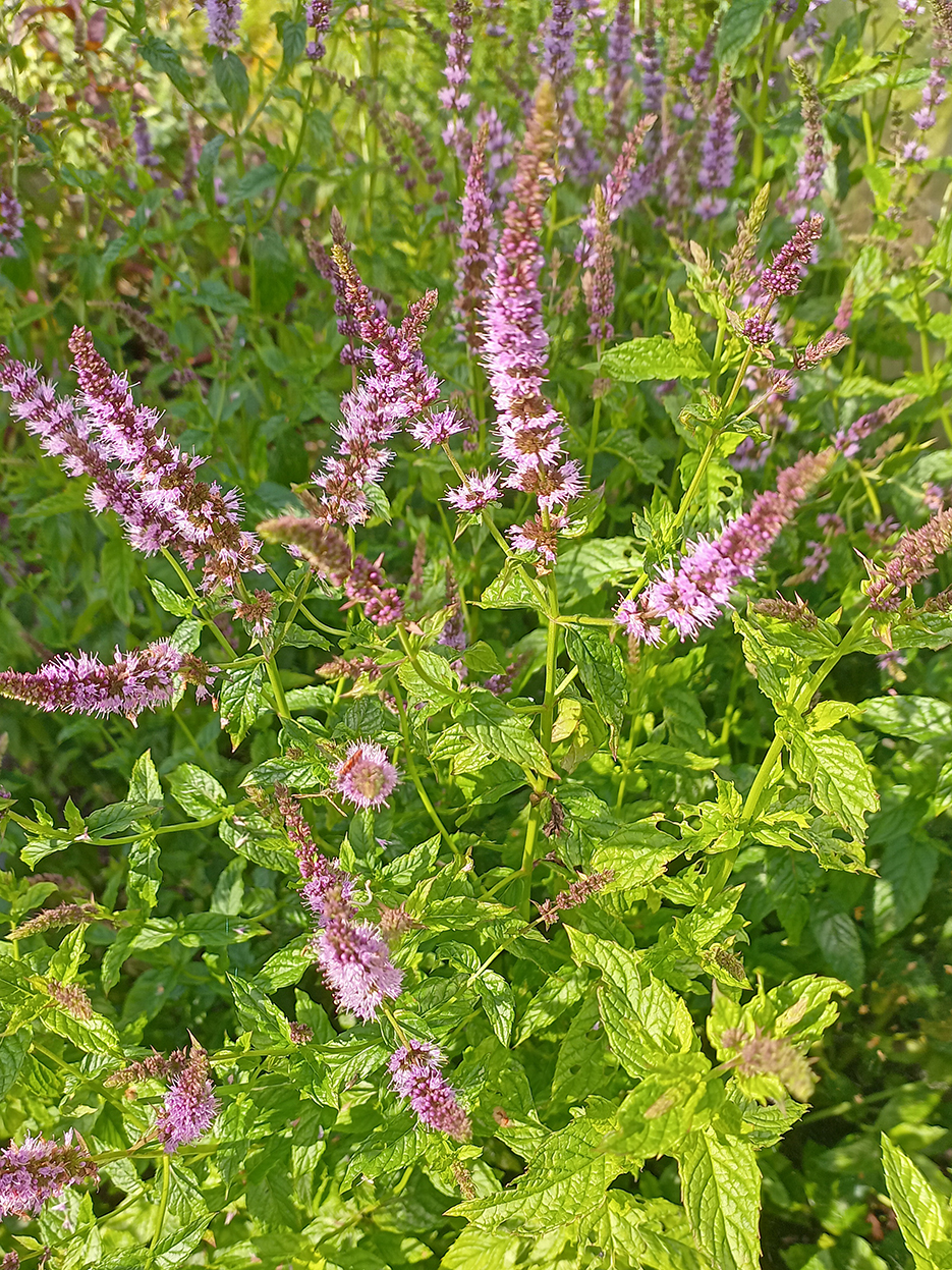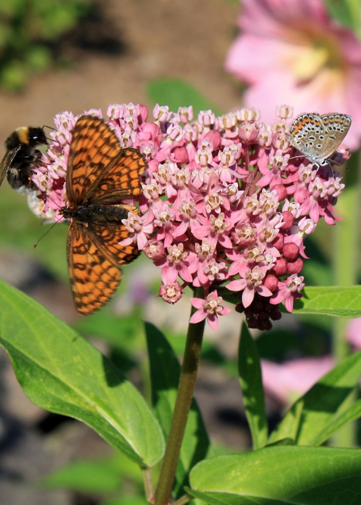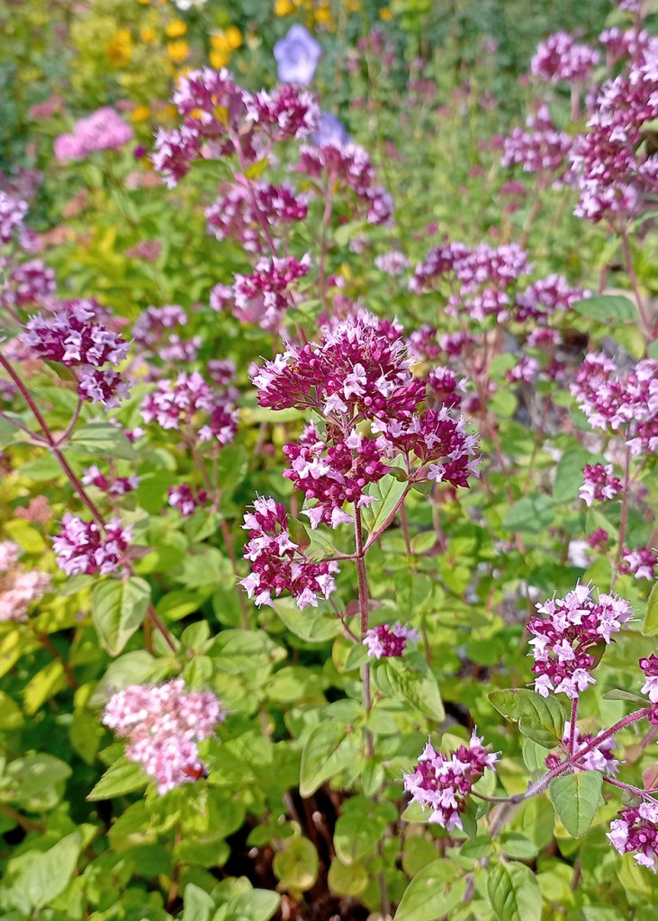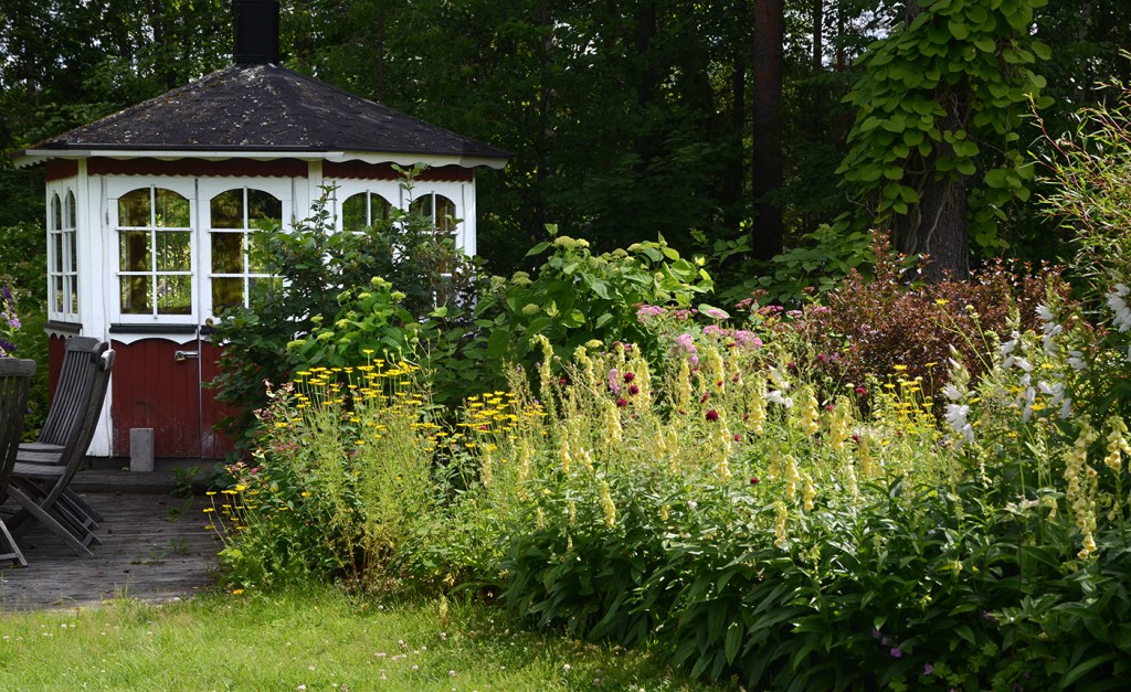 Erilaiset yrtit, helokit, laukat, meiramit, pipot, virmajuuret ja ruusuruohot rikastavat ja sävyttävät puutarhaa ja tekevät siitä monimuotoisen niin perhosten kuin muiden pölyttäjien kannalta.