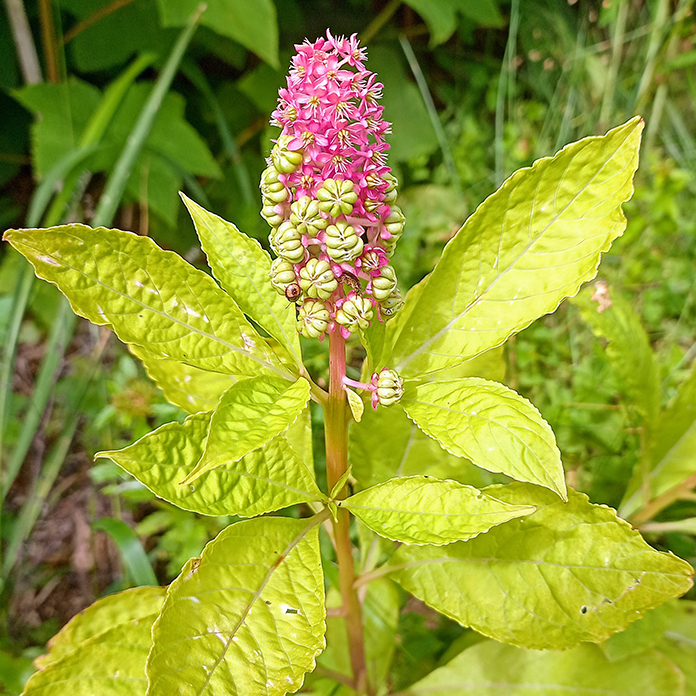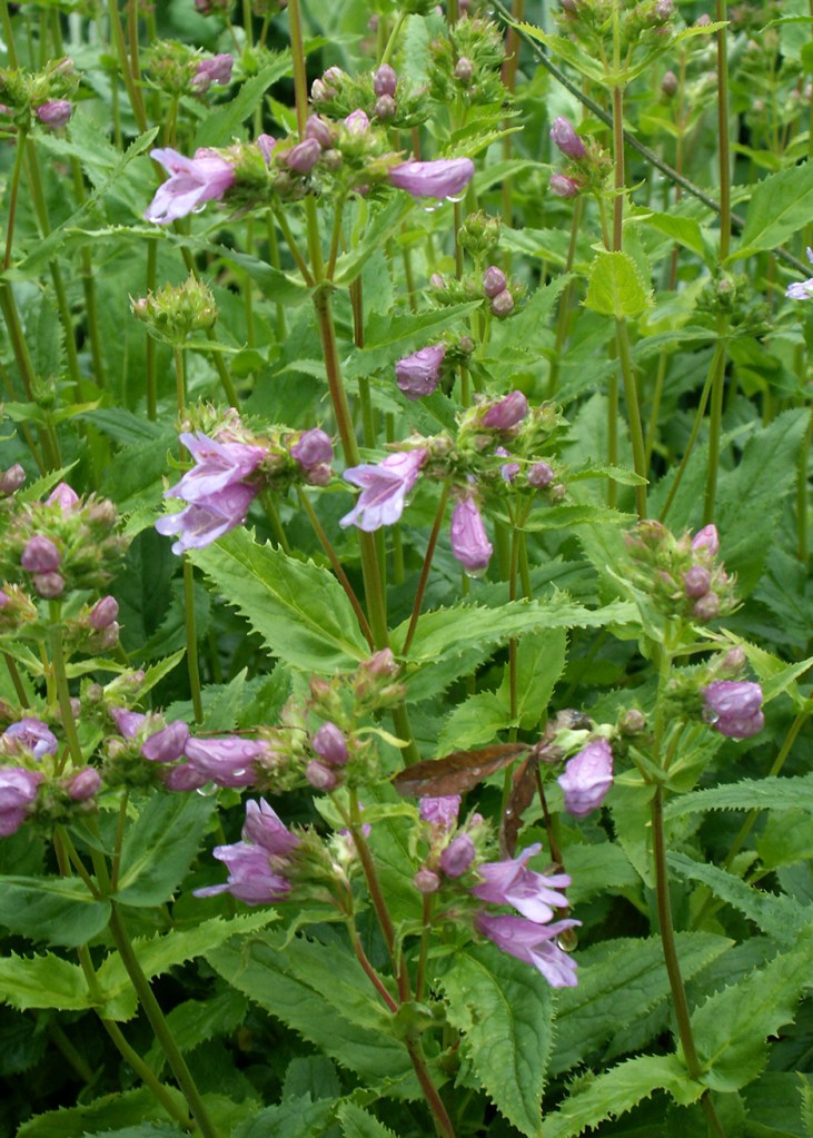 Ylempänä tarhasalkoruusu (2 kuvaa), teurikka (2 kuvaa). Alempana villanukkajäkkärä, virginiantädyke, jonka mettä keisarinviitta imee, ja viimeiseksi vuohennokka.