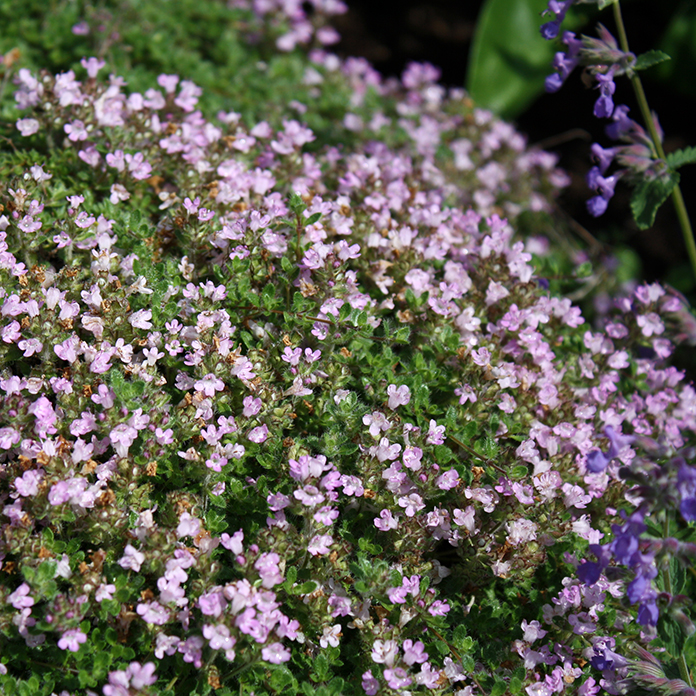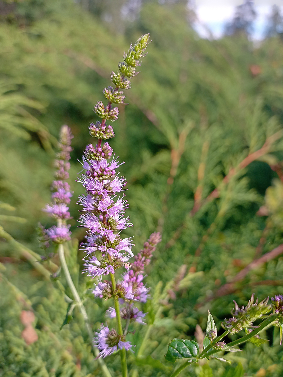 Vasemmalla ylhäällä erilaisia timjameita. Niitä käytetään mausteena antamaan makua ja tuoksua esimerkiksi keittoihin, kastikkeisiin ja jopa lihoihin. Minttujen lajikirjo on runsas. Mintut kasvavat monenlaisissa maastoissa. Isossa kuvassa on viherminttu. Alhaalla vasemmalta oikealle karjalanminttu, kissanminttu, viherminttu ja väriminttu.