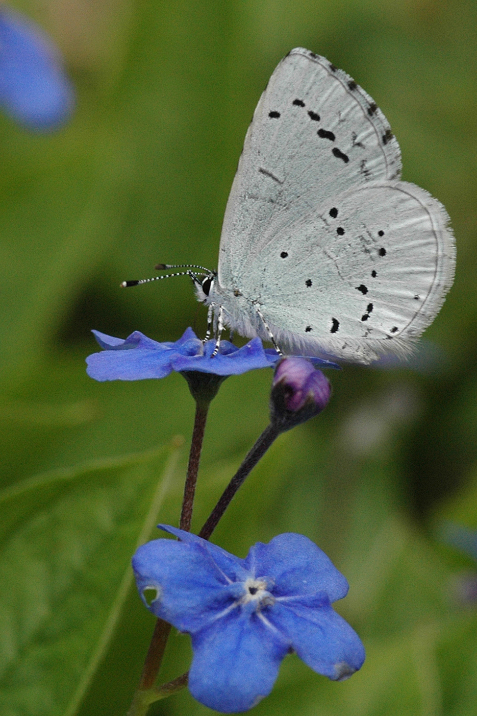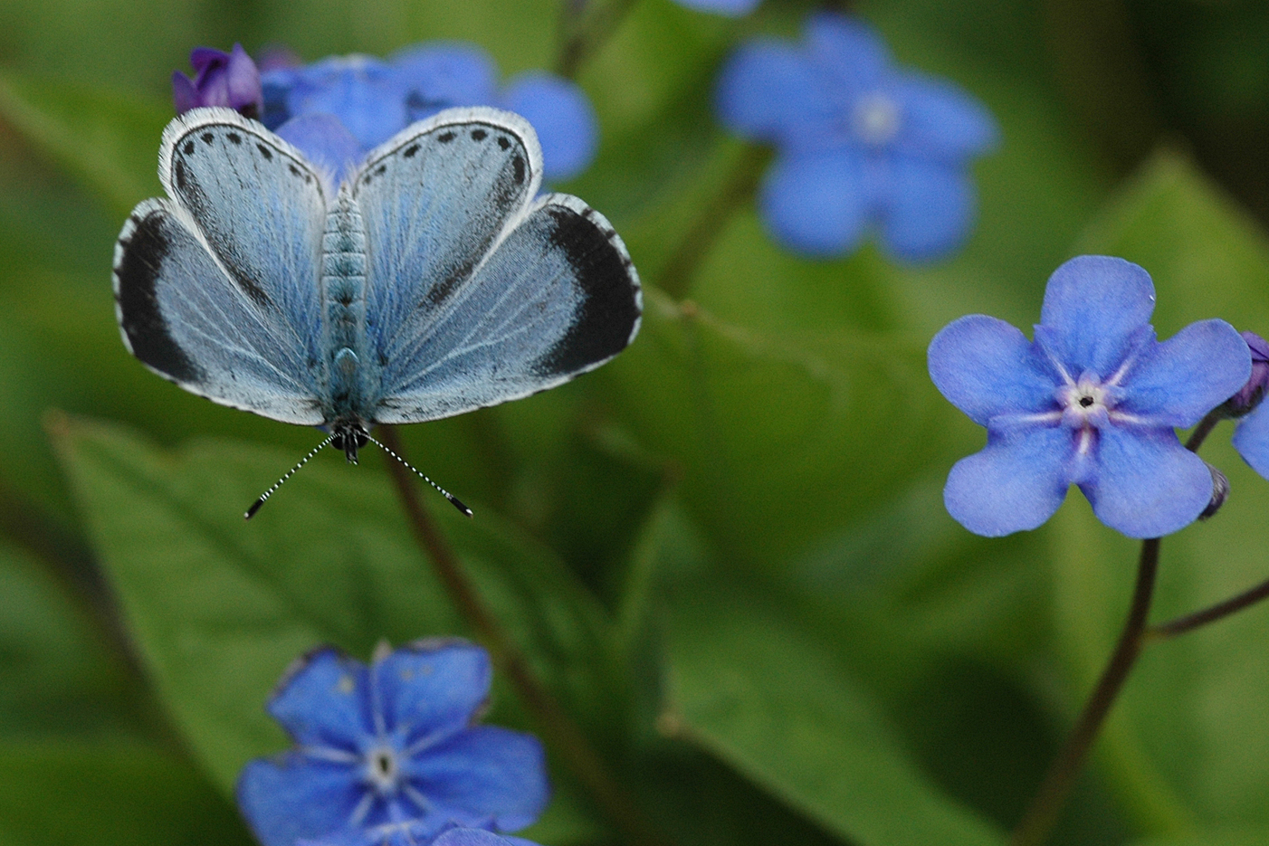 Paatsamasinisiipi kevätkaihonkukalla (Omphaloides verna)