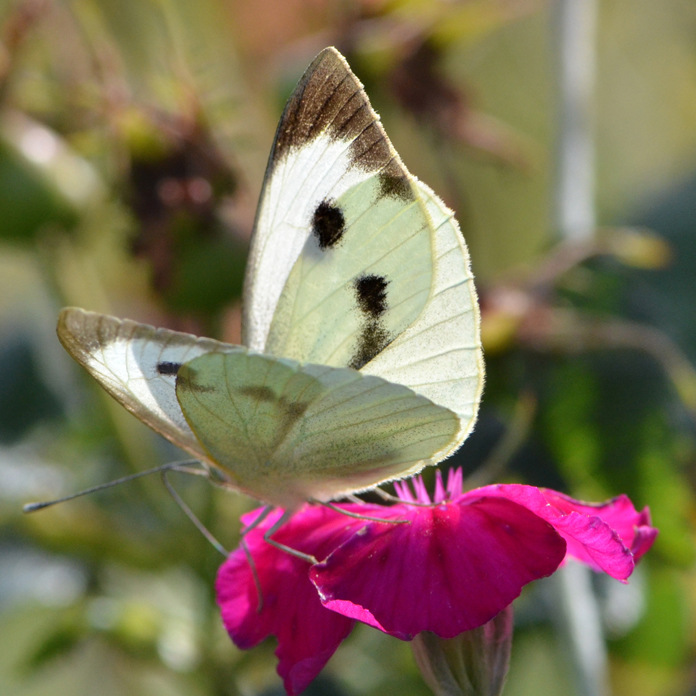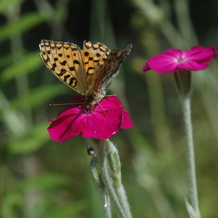 Kaaliperhonen harmaakäenkukalla (Lychnis)