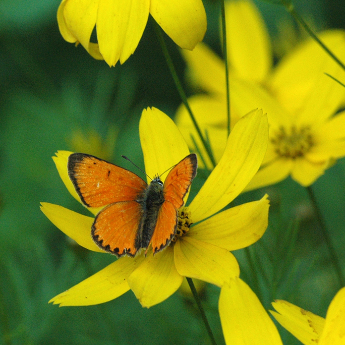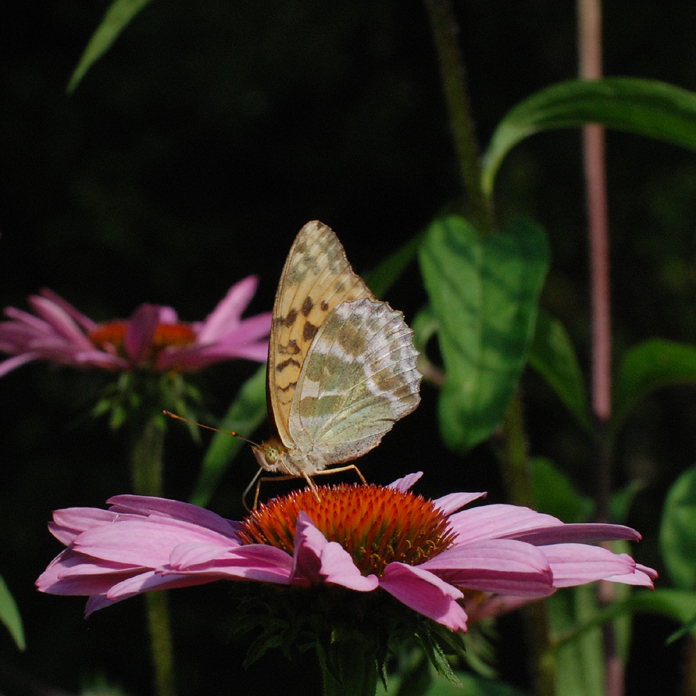 Keskikesän puutarhassa kukkatarjonta on runsaimmillaan. Kevätperhosten lennon loputtua puutarhassa voi nyt nähdä uusia sinisiipilajeja, hopeatäpläperhosia, kultasiipiä, lanttuperhosia ja monia muita. Suomen hieman yli sadasta päiväperhoslajista noin nelisenkymmentä lajia vierailee säännöllisesti tai aika ajoin puutarhan koristekasveilla. Lisäksi puutarhan perhosbaari vetää puoleensa suruvaippoja ja häiveperhosia, jotka eivät käy yleensä kukilla.