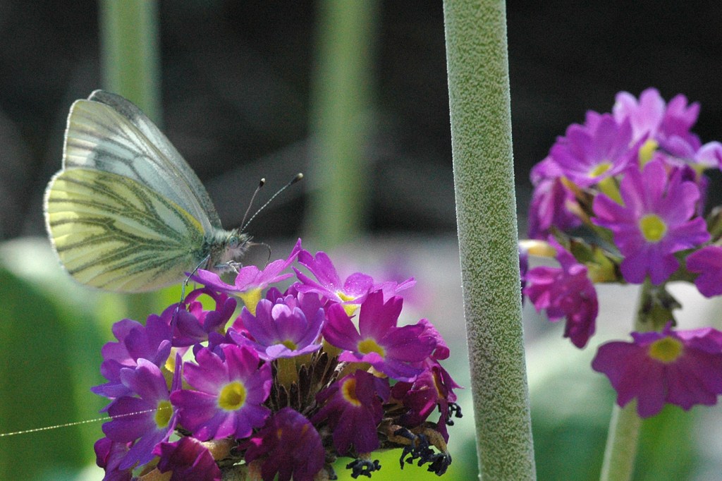Lanttuperhonen palloesikon (Primula) kukinnolla