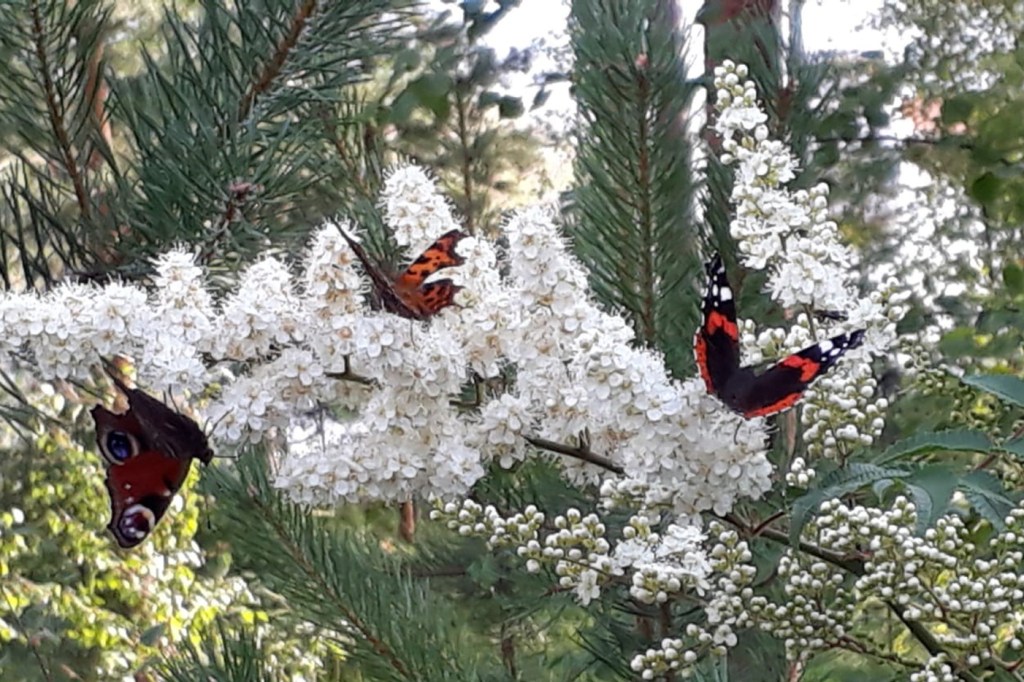 Viitapihlaja-angervo on houkuttanut puoleensa neitoperhosen, herukkaperhosen ja amiraalin. Kuva: H.Pörsti