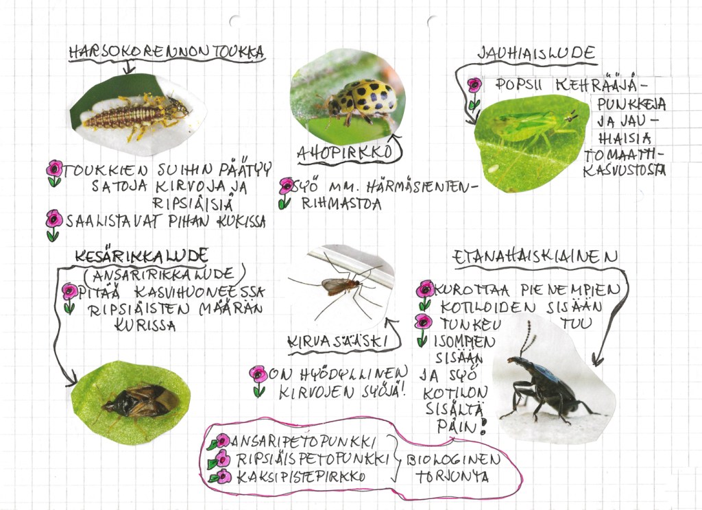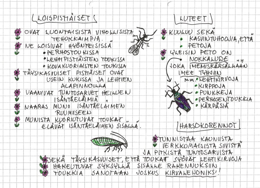 Kotipuutarhan eloa Luteita Piippopaksupää Kukkakärpänen Kaaliperhosen toukka Yökkösen toukka Maamehiläinen Kimalaiskuoriainen Kukkakärpänen