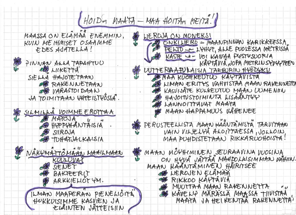 Tässä osiossa tuodaan esille maaperän ja sen erilaisten pieneliöiden merkitystä kasvien hyvinvoinnille sekä laadukkaiden viheralueiden vaikutuksia muulle ympäristölle.