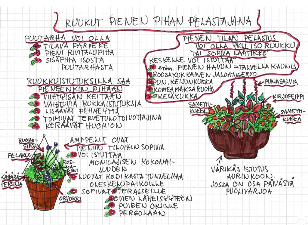 Jos ei ole tilaa varsinaiselle puutarhalle, ruukkuistutuksilla voi rakentaa monenlaisia patioita ja viheralueita