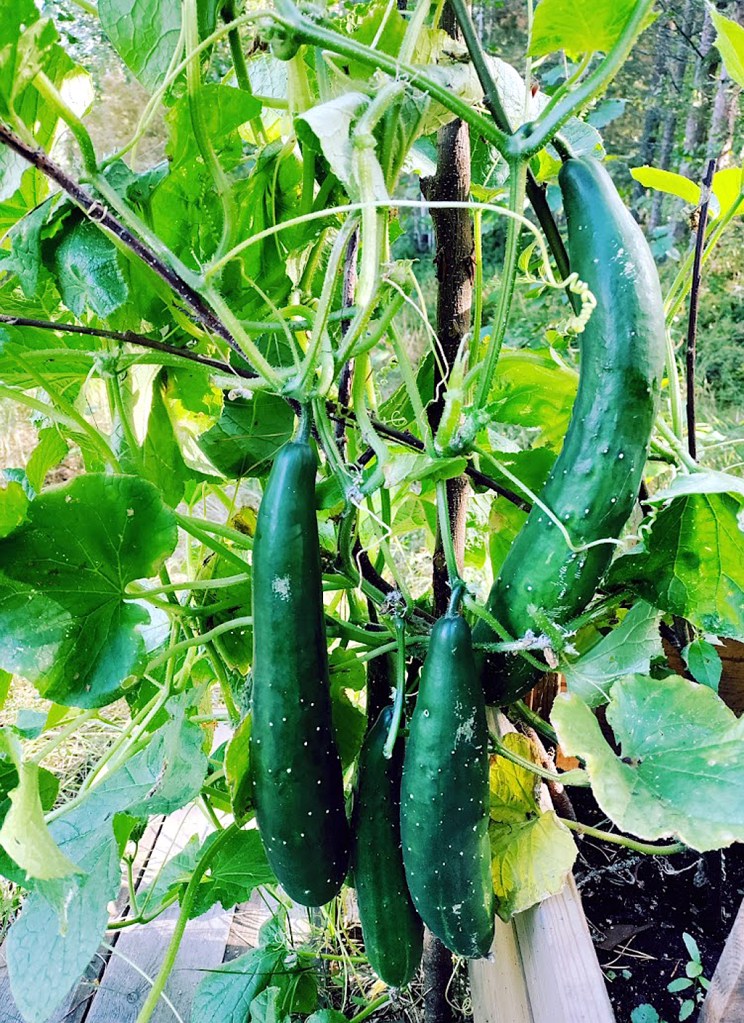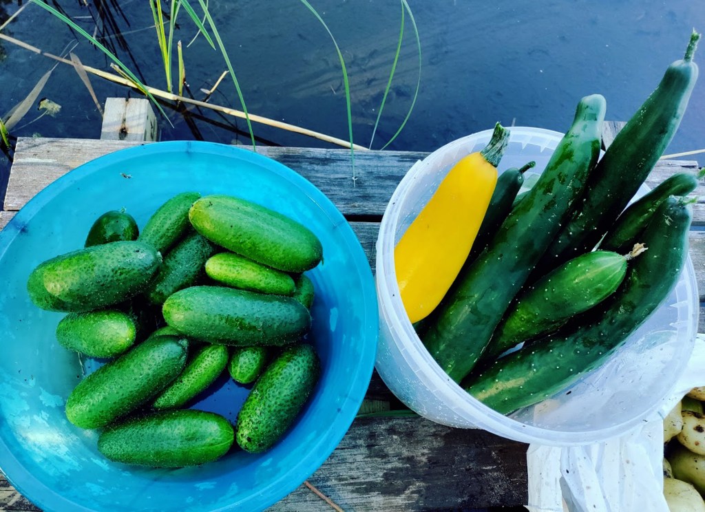 Viimeiset kuvat ovat saman vuoden elokuulta, jolloin palstoilta on jo saatu pientä satoa (perunaa, avomaan kurkkua, pystykurkkua, porkkanaa, retiisiä, kesäkurpitsaa ja raparperia).