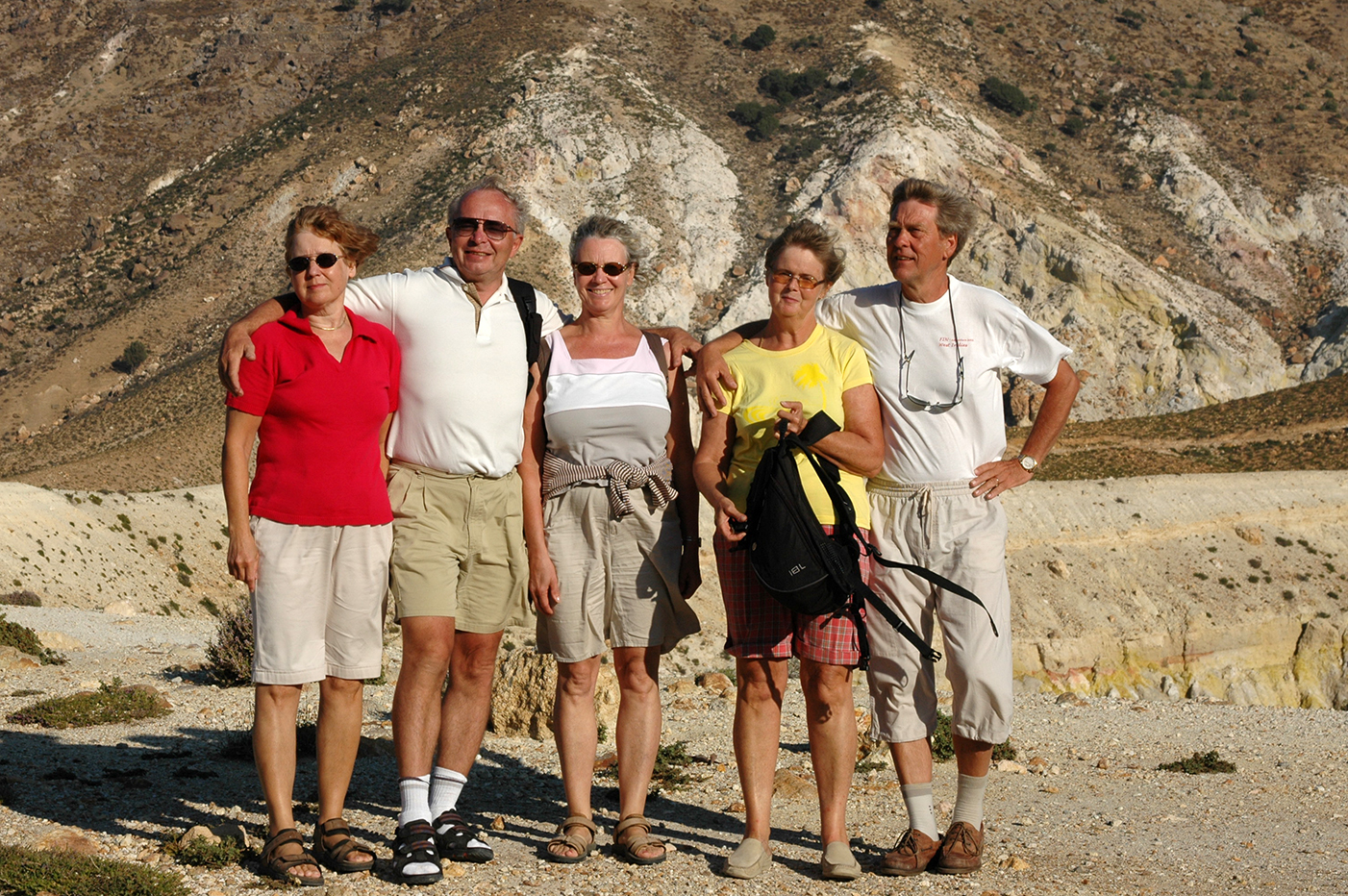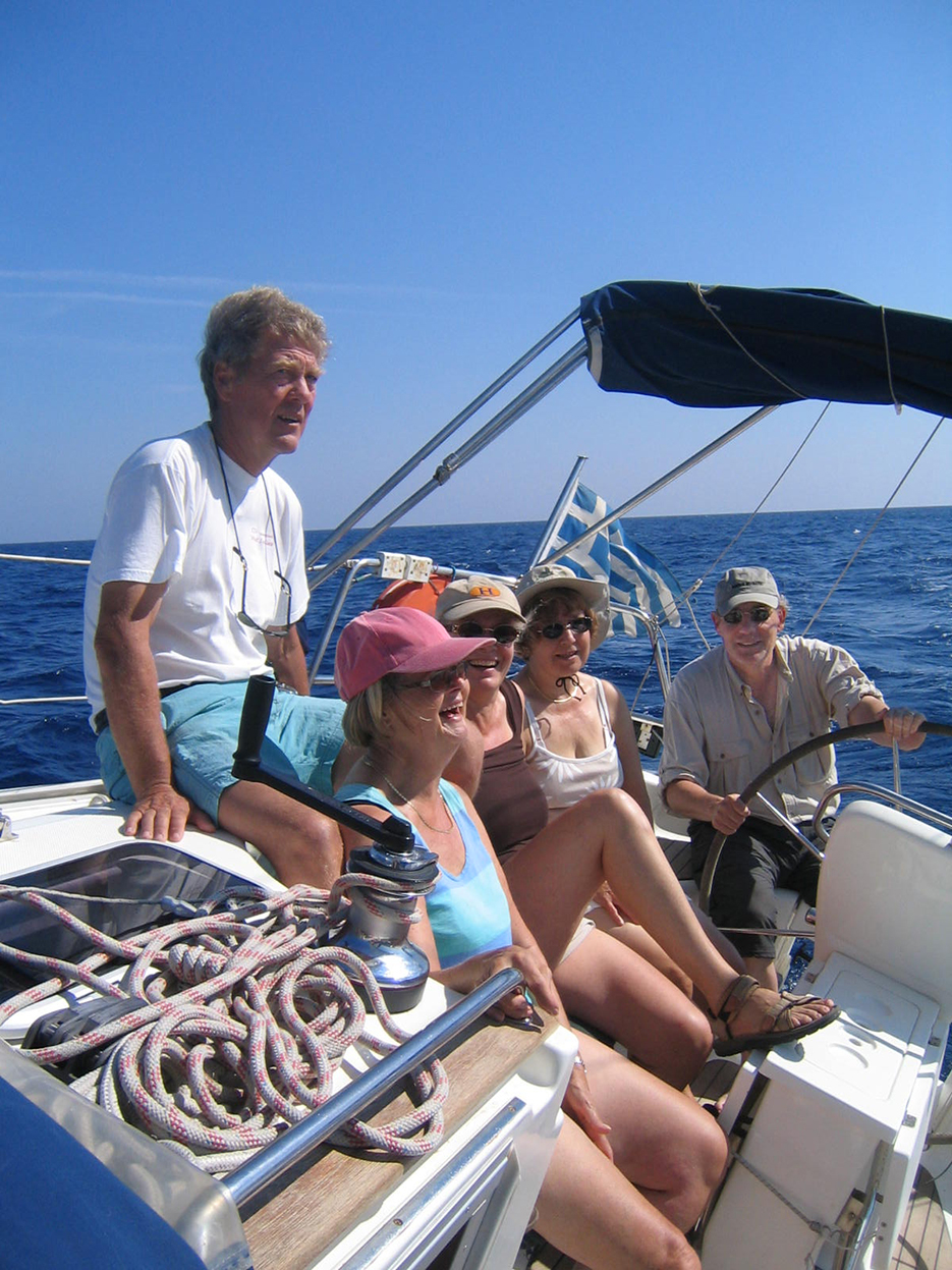 Kolmen pariskunnan lokakuinen purjehdus Egeanmerellä 2005. Karin ja Tarin tuoreet tyttöystävät tulivat Ateenaan käymään juhannuksena 1968 ja yhdessä on eletty siitä alkaen. Mara löysi Leenan hieman myöhemmin, mutta muistot ovat yhteisiä koko porukalle.