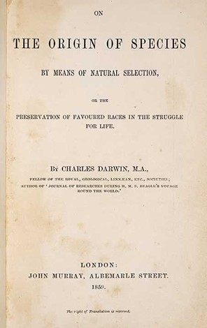 Charles Darwinin ja Alfred Russel Wallacen tiedelehden Editorille osoitetun yhteisen kirjeen ensimmäinen kappale. Kirjeen otsikko on: ”On the Tendency of Species to form Varieties; and on the Perpetuation of Varieties and Species by Natural Means Selection. Journal of the Proceedings of the Linnean Society, 1858, vol. 3. Seuraavana vuonna, 1859 Charles Darwin julkaisi evoluutioteorian perustana pidetyn kirjansa: ”On the Origin of Species”.