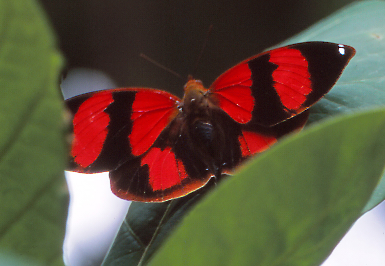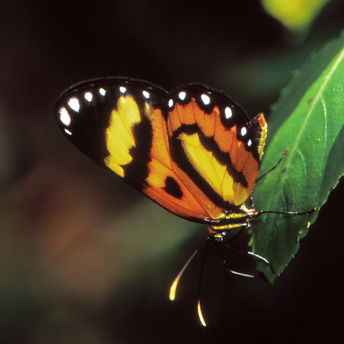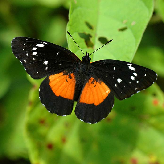 Joenuomasta ponnahtaa punainen ja musta perhonen, kuubansydänsiipi Siderone galantha (ks. alla) lentäen vuoren rinteellä olevalla aukealla, jota liaanien ja päällyskasvien peitossa olevat jättipuut reunustavat. En ole koskaan nähnyt tuollaista! ”En minäkään”, León sanoo, vaikka kuljemme hänen kotimaillaan. ”Mutta täällä tapaa joka retkellä jotain uutta.”