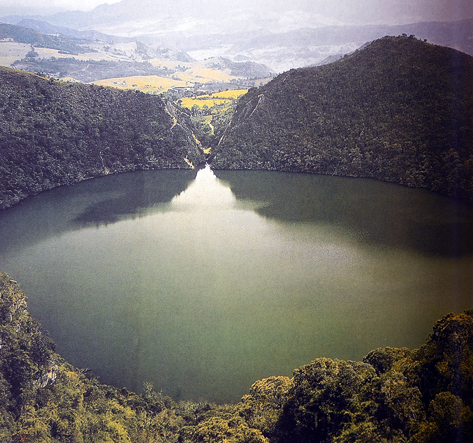 Muisca-intiaanien maalla, keskeisessä Kolumbiassa on viisi pyhää palvontapaikkaa: Guatavita, Guasca, Siecha, Teusaca ja Ubaque. Legenda El Doradosta on syntynyt pyhistä pyhimmän, Laguna de Guatavitan kraaterimaisen järven tarinoista (alla). Muiscat uskovat, että heidän esivanhempansa Bachue ja Bochica syntyivät järvessä, sukelsivat läpitunkemattoman sumun verhoaman veden syvyyksiin ja muuttuivat jumalallisiksi käärmeiksi.